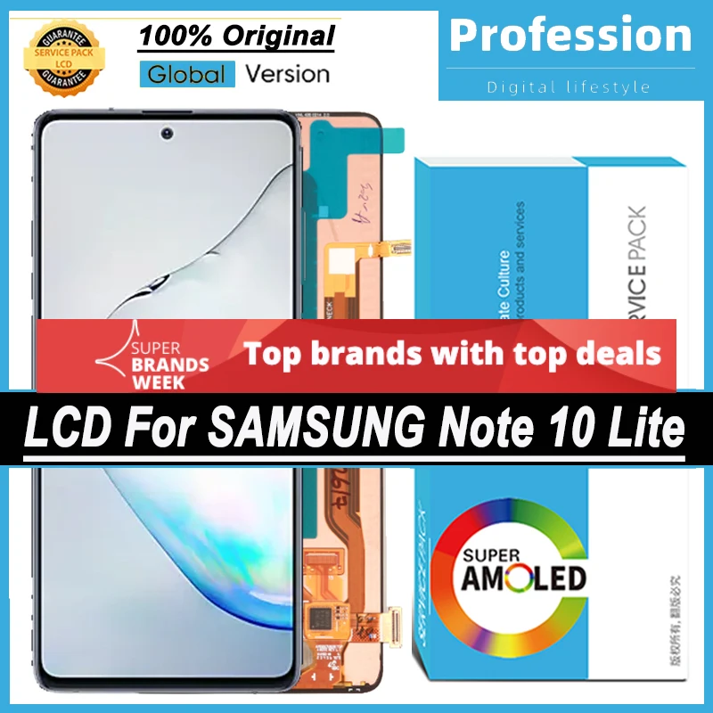 Дисплей с тачскрином для Samsung Galaxy Note 10 Lite, N770F, 100% дюйма, с рамкой, с сервисным пакетом