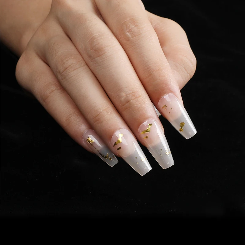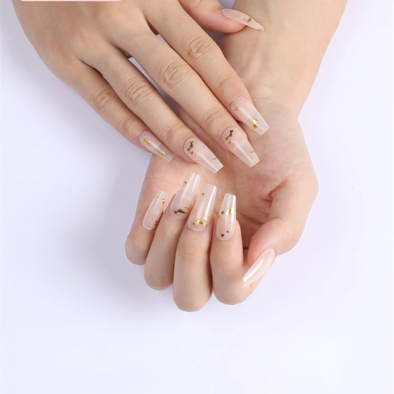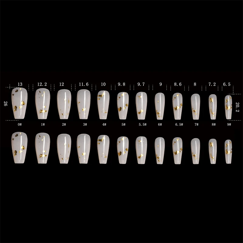 Полупрозрачные гробы из золотой фольги, кремово-белые нажимные искусственные ногти SM19210537