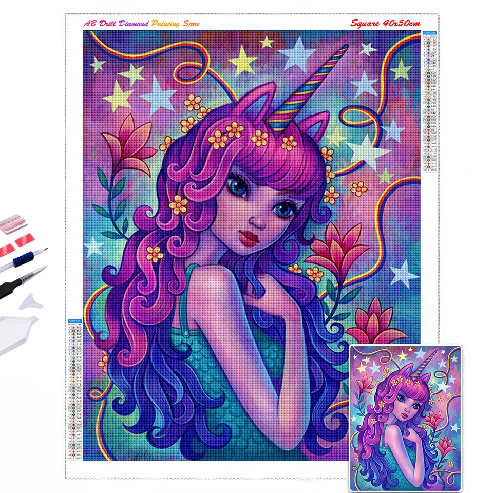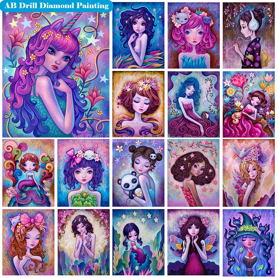 5d AB Алмазная вышивка, девушка вышивка крестиком, полная картина из квадратных страз, мультяшный портрет стразы, мозаичное украшение
