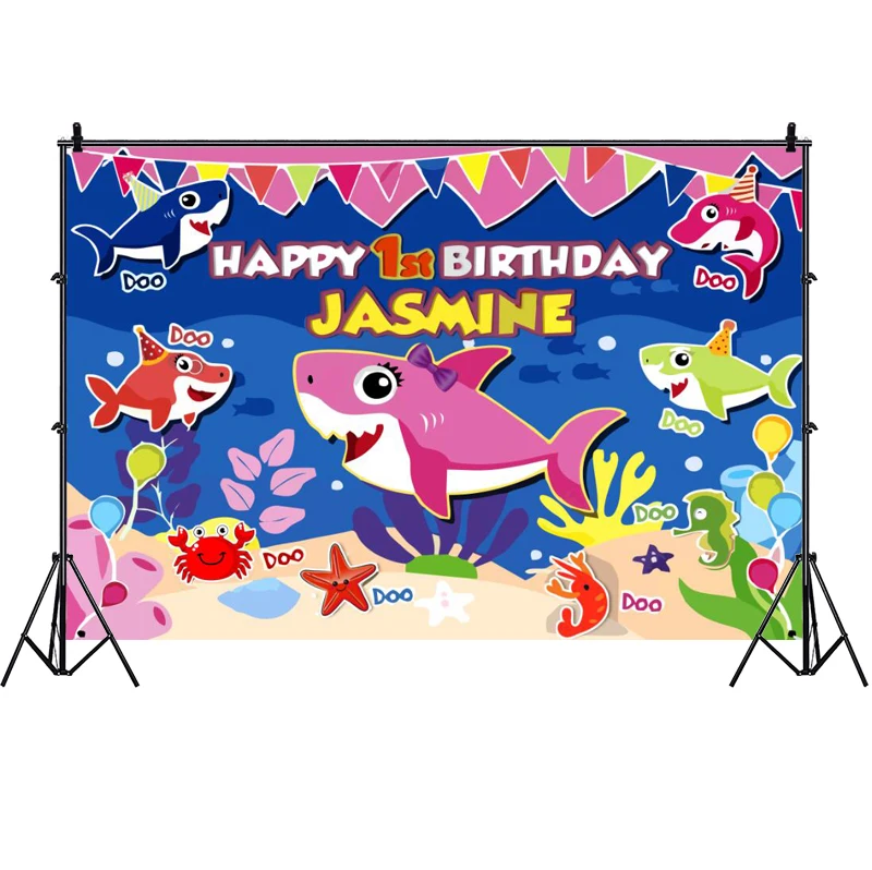 Пользовательский фон для фотосъемки с розовой акулой для вечеринки в честь рождения ребенка девочки фон для фотосъемки реквизит декоративный баннер