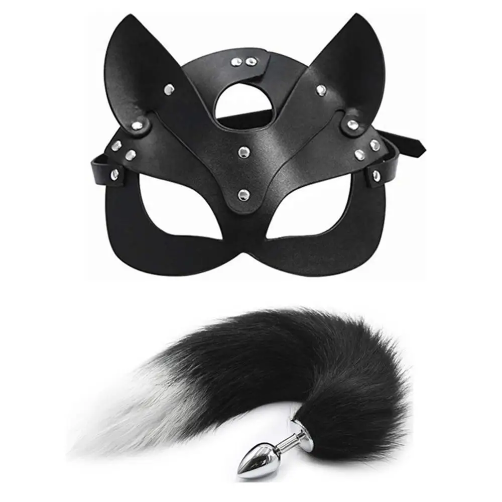 Секс-игрушки для женщин, косплей, маска лисы, хвост, Анальная пробка, металлическая маска для ануса, Анальная пробка, маска для кошки, вечерние, сексуальные маски для взрослых, игровые маски