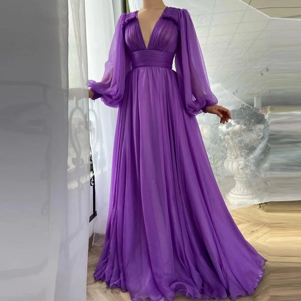 Женское газовое платье, Розовое Бальное Платье с длинным рукавом, о...