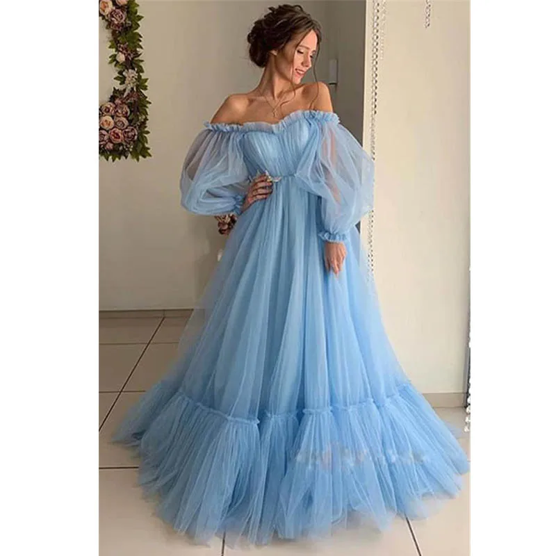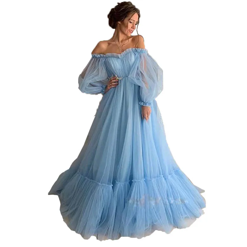 Платье принцессы с длинным рукавом и открытыми плечами, из газовой ткани