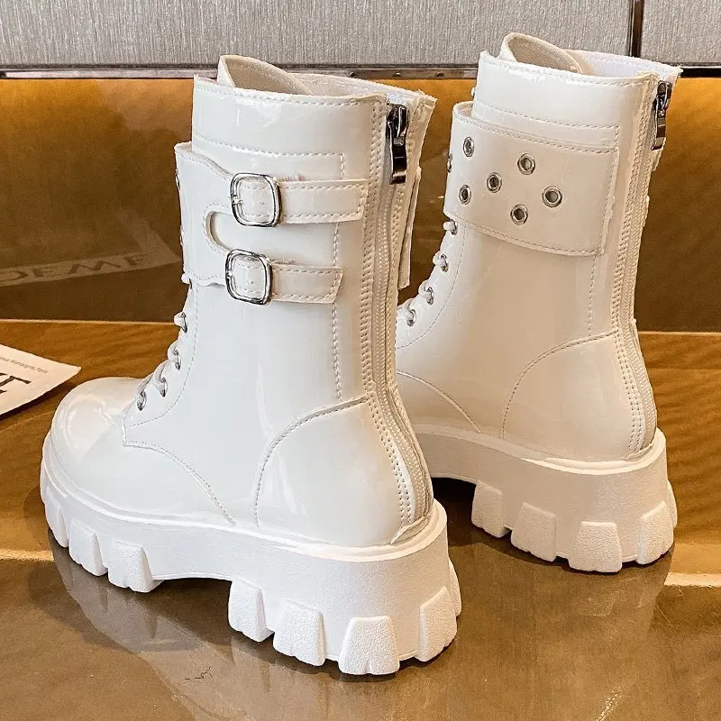 Платформа Лакированная кожа сапоги новые заклепки женские осенние м...