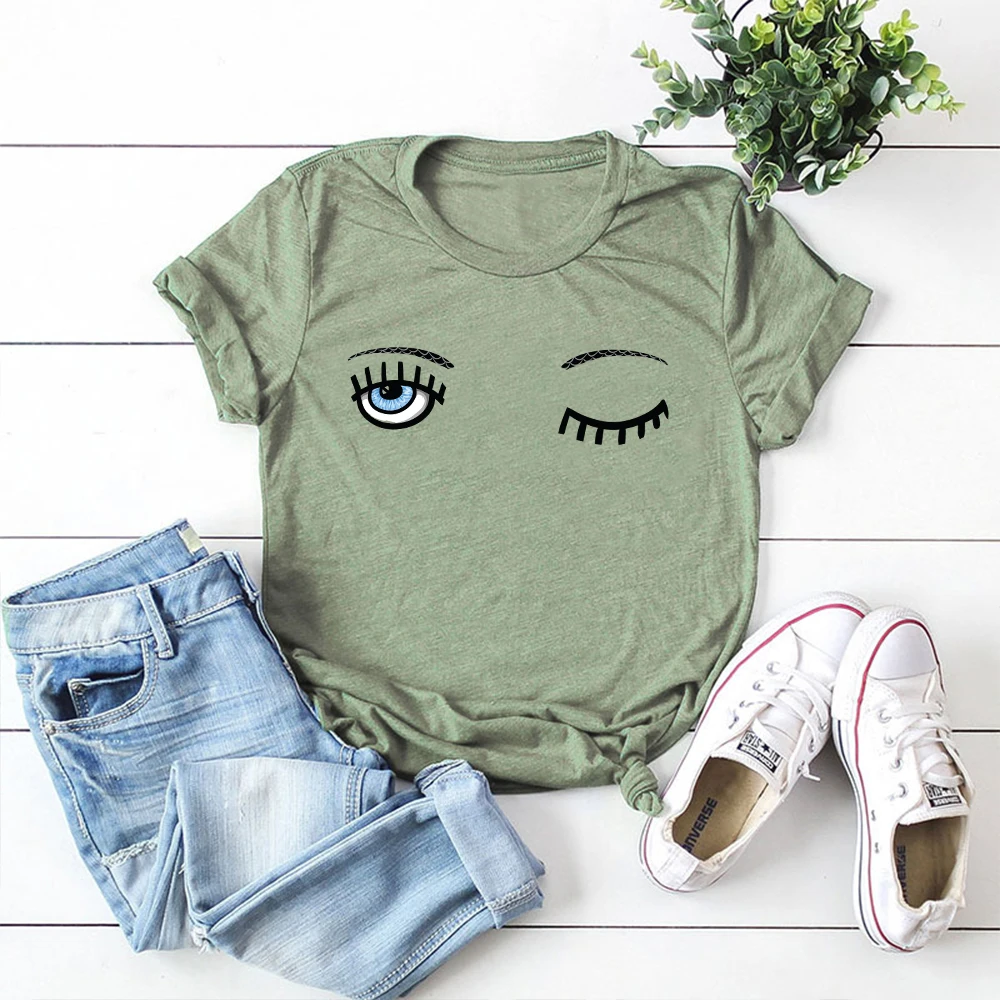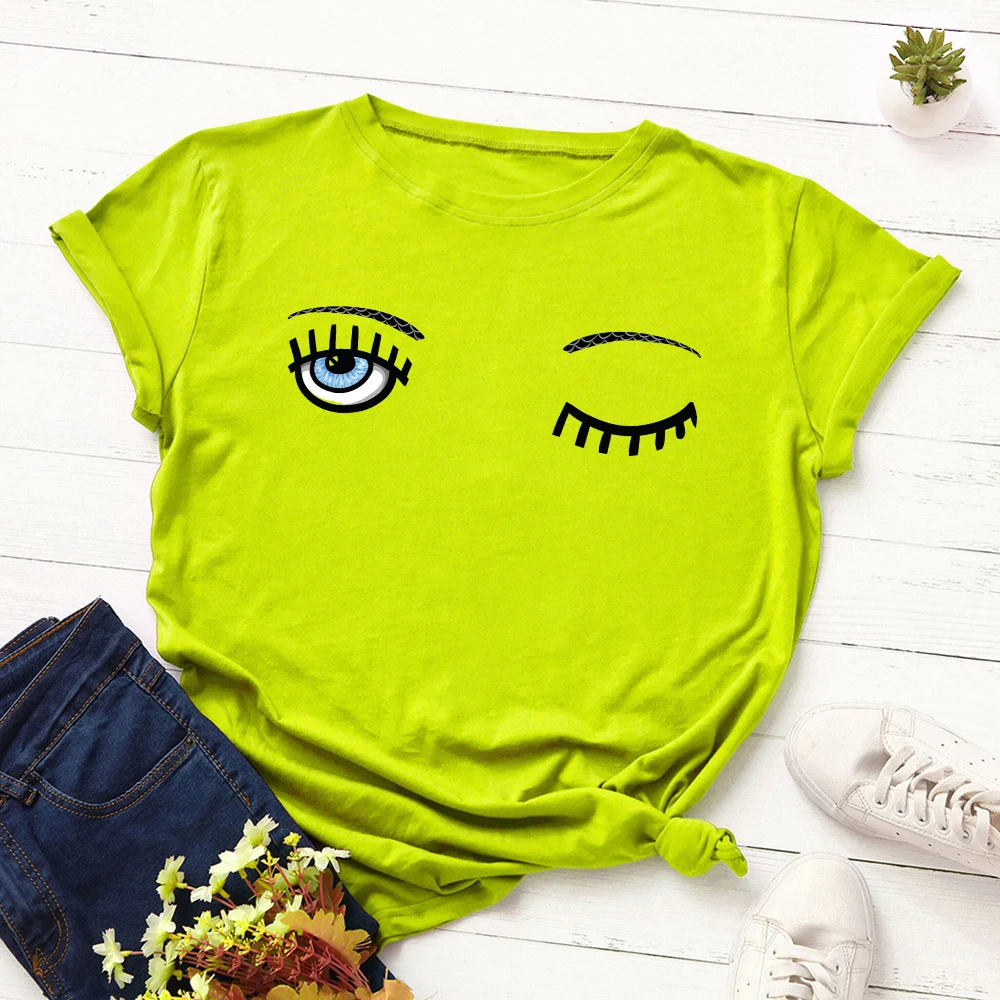 Женские хлопковые футболки с коротким рукавом, летние футболки с графическим рисунком Wink Eye, топы для женщин, свободная повседневная футболка большого размера, одежда