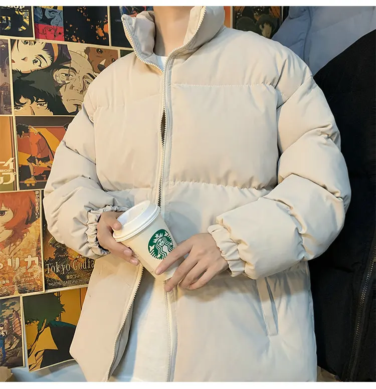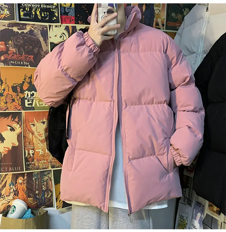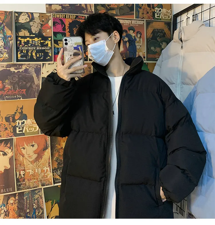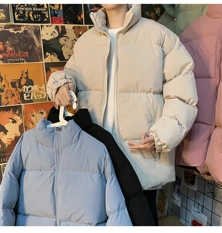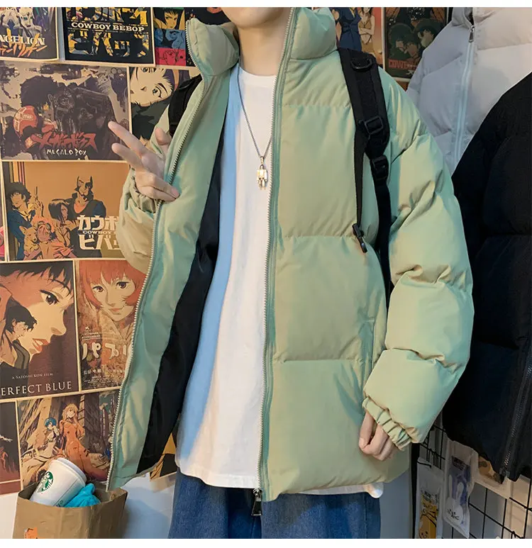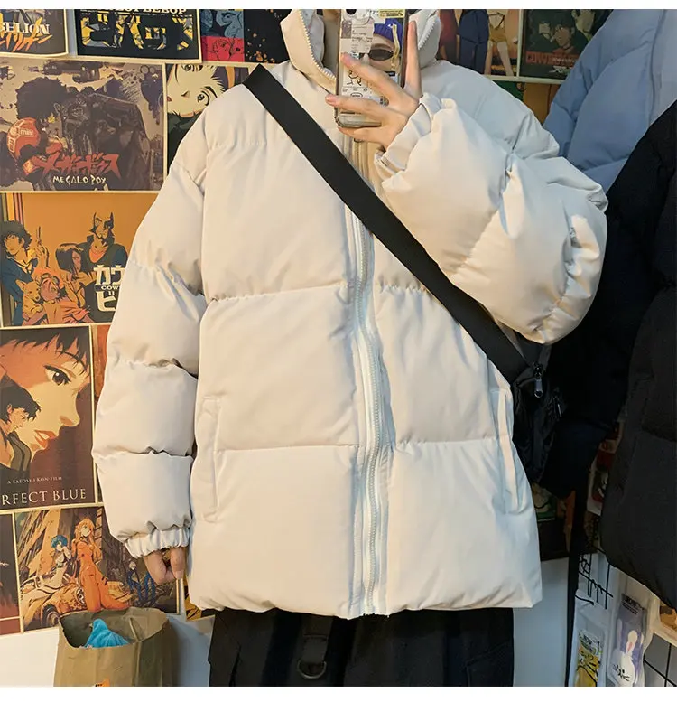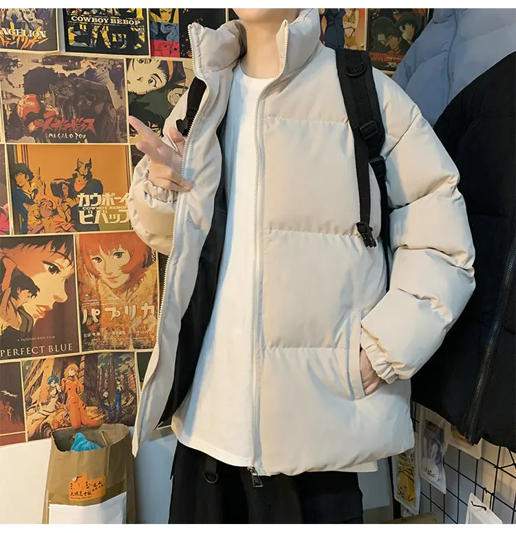 Мужская зимняя пуховая куртка с воротником-стойкой, в стиле Харадзюку