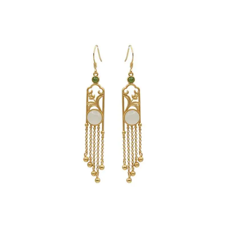 Новые дизайнерские длинные серьги из натурального белого нефрита с бахромой из магнолии китайские яркие Ретро Женские брендовые ювелирные изделия