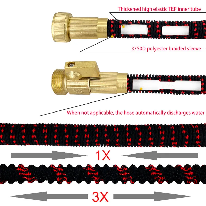 Название продукта: телескопический шланг высокого давленияМатериал: латунь + TPE внутренняя трубка + полиэфирная оплеткаРазмер:17ft: 5 м после Закачка воды (оригинальная длина 1,5 м)25ft: 7,5 м после Закачка воды (оригинальная длина 2,5 м)50 футов: 15 м после впрыска воды (оригинальная длина 5 м)75ft: 22m после Закачка воды (оригинальная Длина 7,5 м)100 футов: 30 м после впрыска воды (оригинальная длина 10 м)Примечания:1 */3 раза расширение и сжатие может только полностью расширяться под высоким давлением воды и может только расширяться 1-2 раза под низким давлением воды.2 */посылка включает в себя:1 / * шланг + водяной пистолет + сумка для хранения3 */выше 6 различных размеров, пожалуйста, внимательно проверьте перед покупкой, спасибо4 */процесс впрыска воды может быть расширен до соответствующей длины.Как только вода проходит через водопроводную трубу, длина водопровода будет увеличена, и вода не пройдет.Он будет втянут в исходную длину для удобства использования, вес и без места на светильник.Шланг упакован в высококачественную ткань, красивый и прочный.Применимые случаи: подходит для орошения и очистки: садов, автомоек, развлекательных автомобилей, бассейнов, лодок и т. д.,
