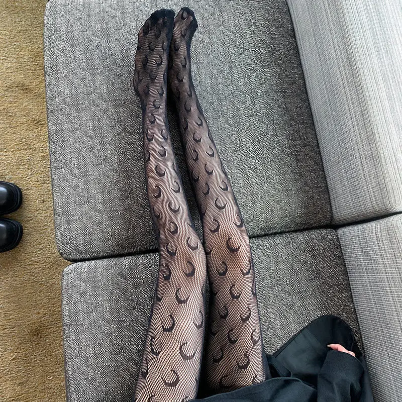 Черные носки с изображением Луны для женщин ажурные пикантные дизай...