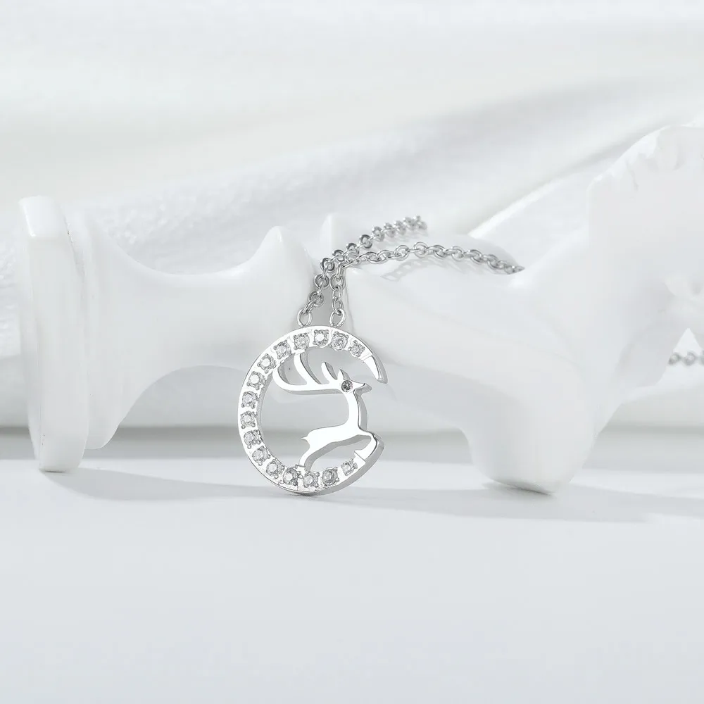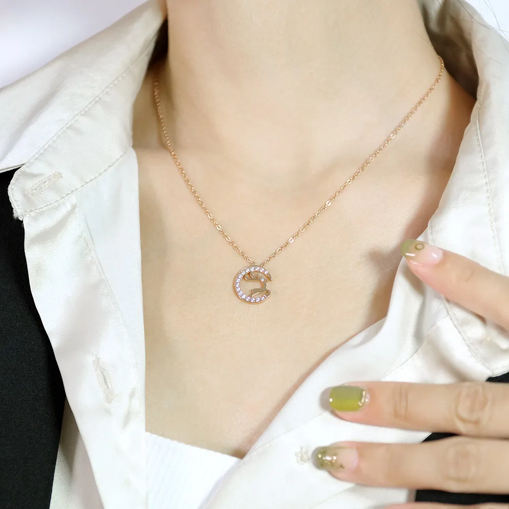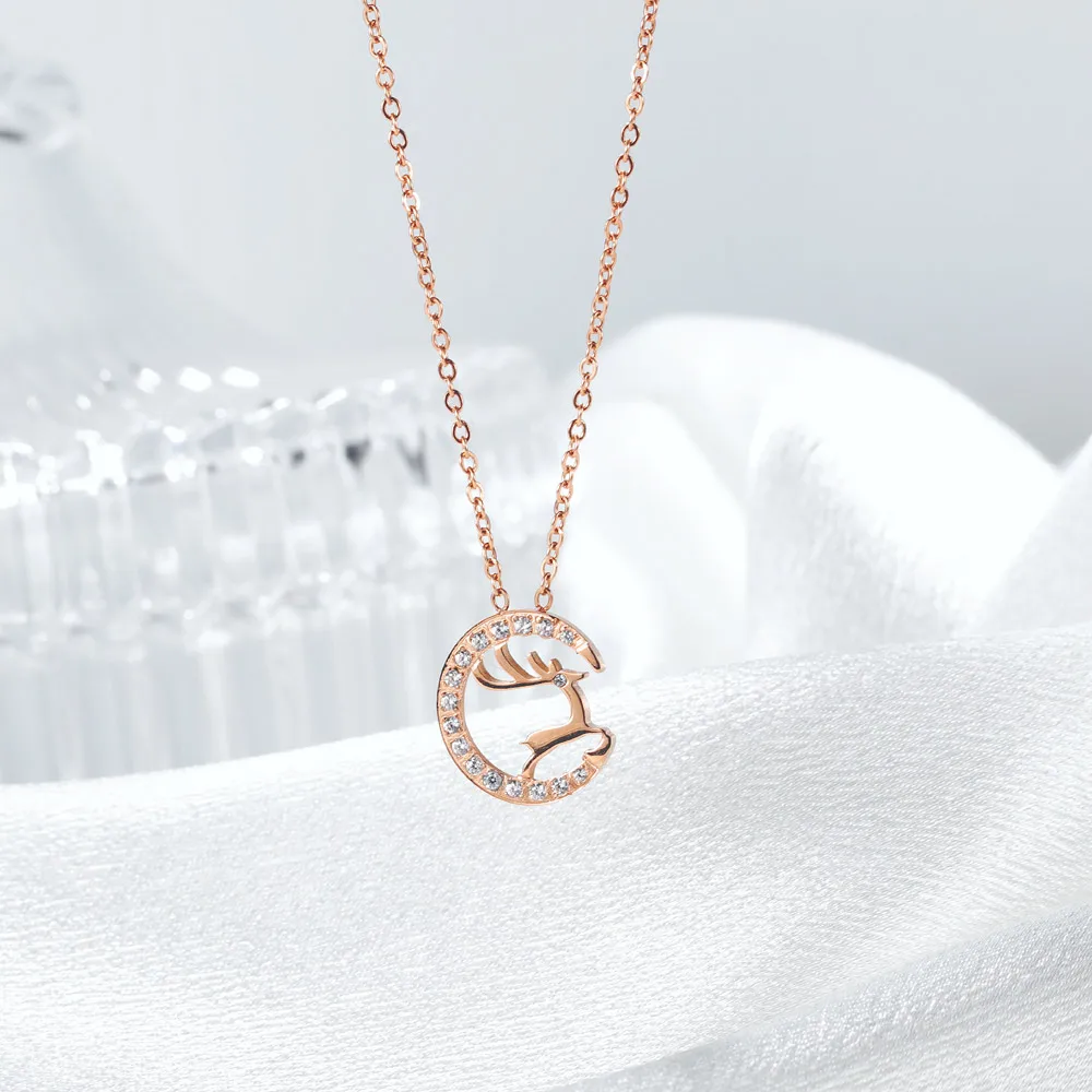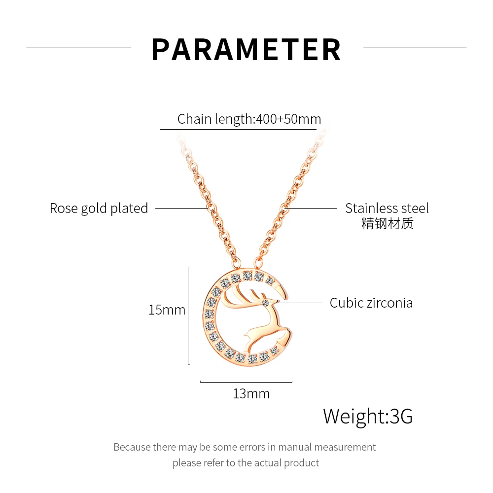 JIALY Европейская мода 316L нержавеющая сталь Роза олень Очаровательная подвеска с паве AAA CZ ожерелье цепь для женщин девушек ювелирные изделия подарок