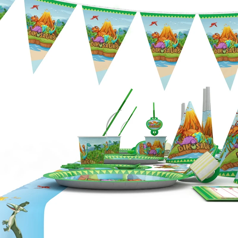 Зеленая динозавр, одноразовая посуда, Мультяшные принадлежности для...