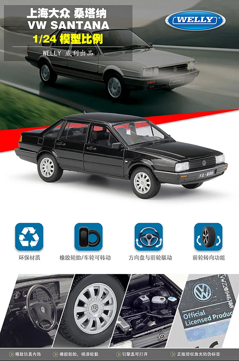WELLY 1:24 Volkswagen VW SANTANA сплав роскошный автомобиль литье под давлением оттягивание автомобилей модель коллекции игрушек