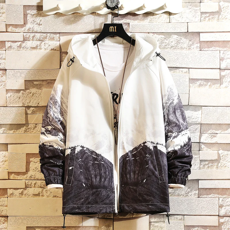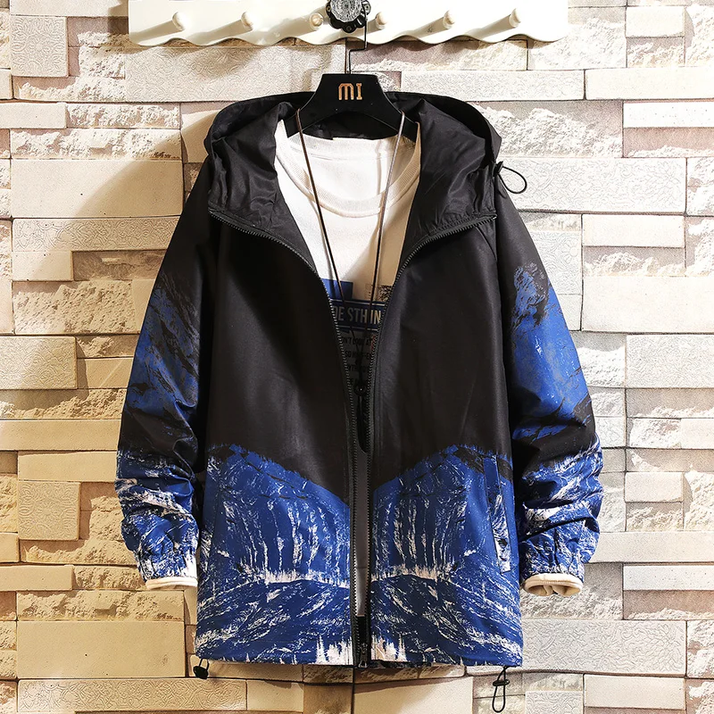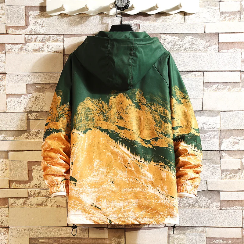 Хип-хоп принт с капюшоном куртки мужские 2021 весна осень Япония Харадзюку унисекс универсальные шикарные большие уличные ветровки 5XL