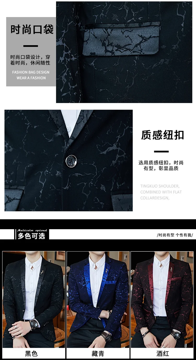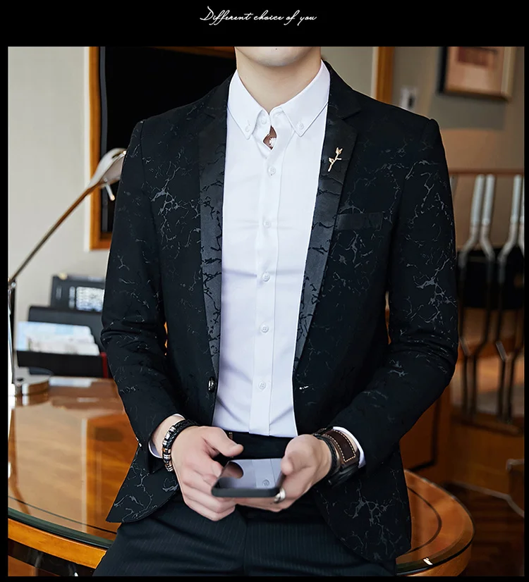 Роскошный пиджак для банкета вечерние, вечернее платье, модная жаккардовая Повседневная Деловая куртка, приталенная Мужская Свадебная куртка, Мужская одежда