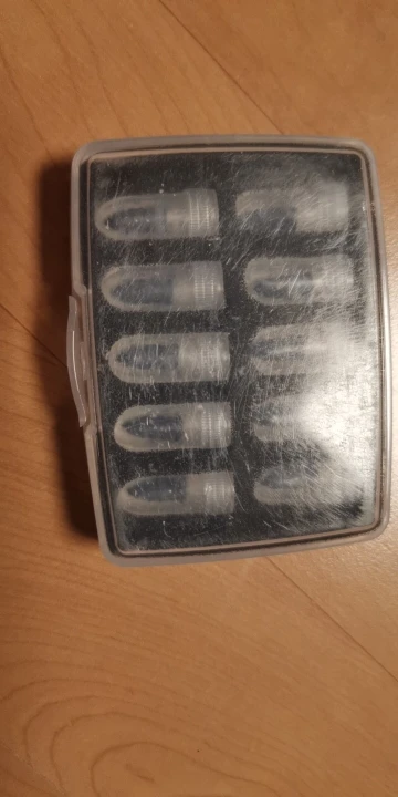 10 шт. упакованы в удобную пласт.коробочку с замком,выглядят как мелкие саморезы покрытые,чем то напоминающее парафин.