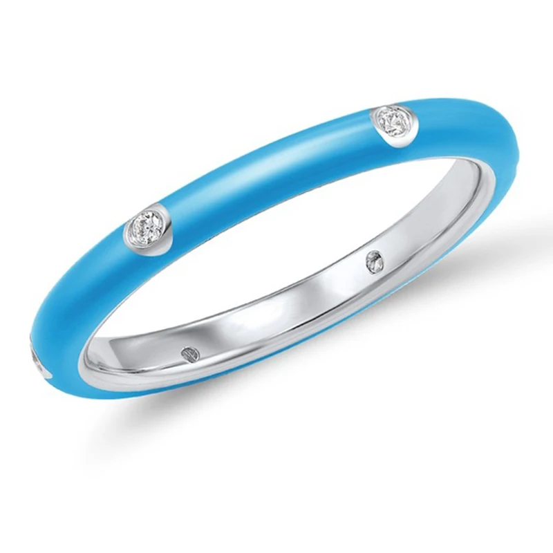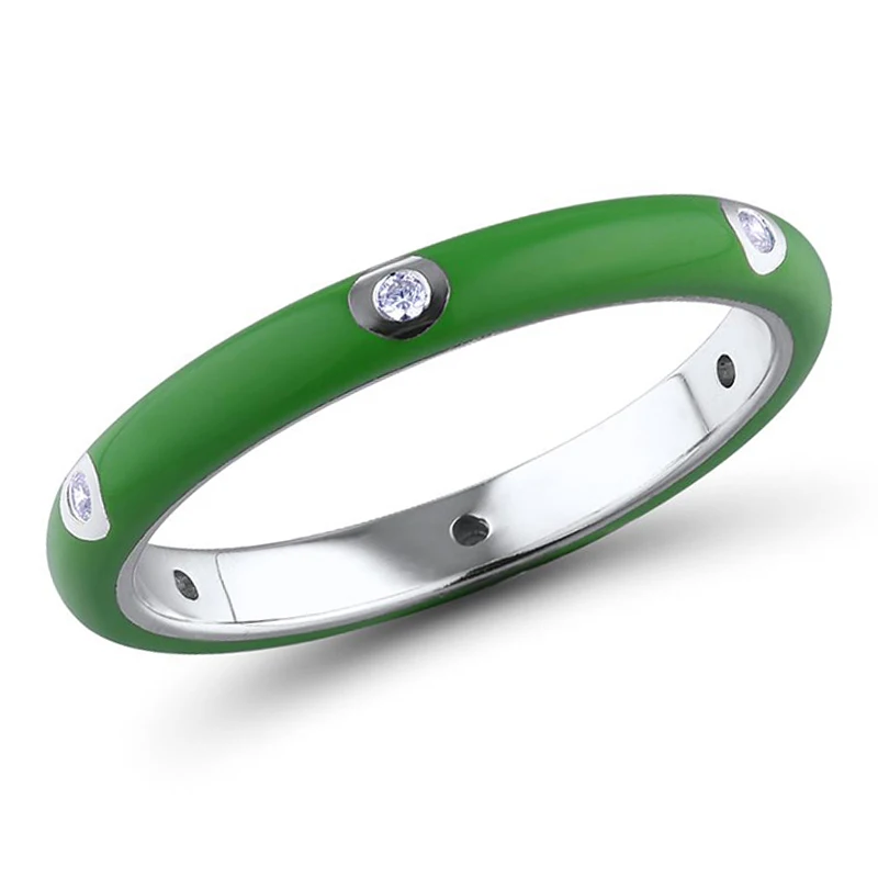Женское эмалированное кольцо с цирконом, с серебряным покрытием