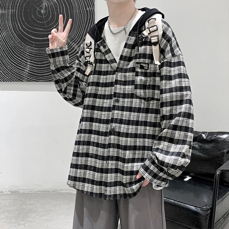 Рубашка в клетку с капюшоном в японском стиле, осень 2021, Высокока...