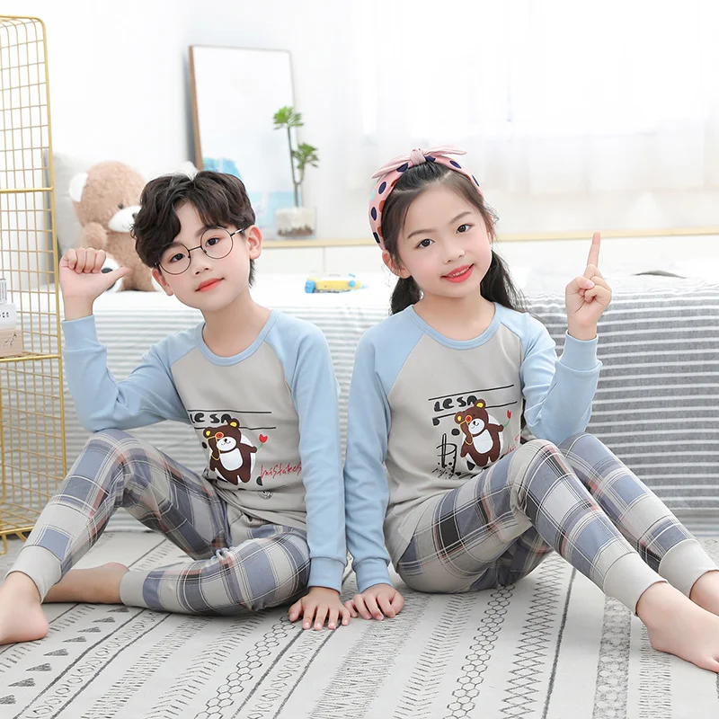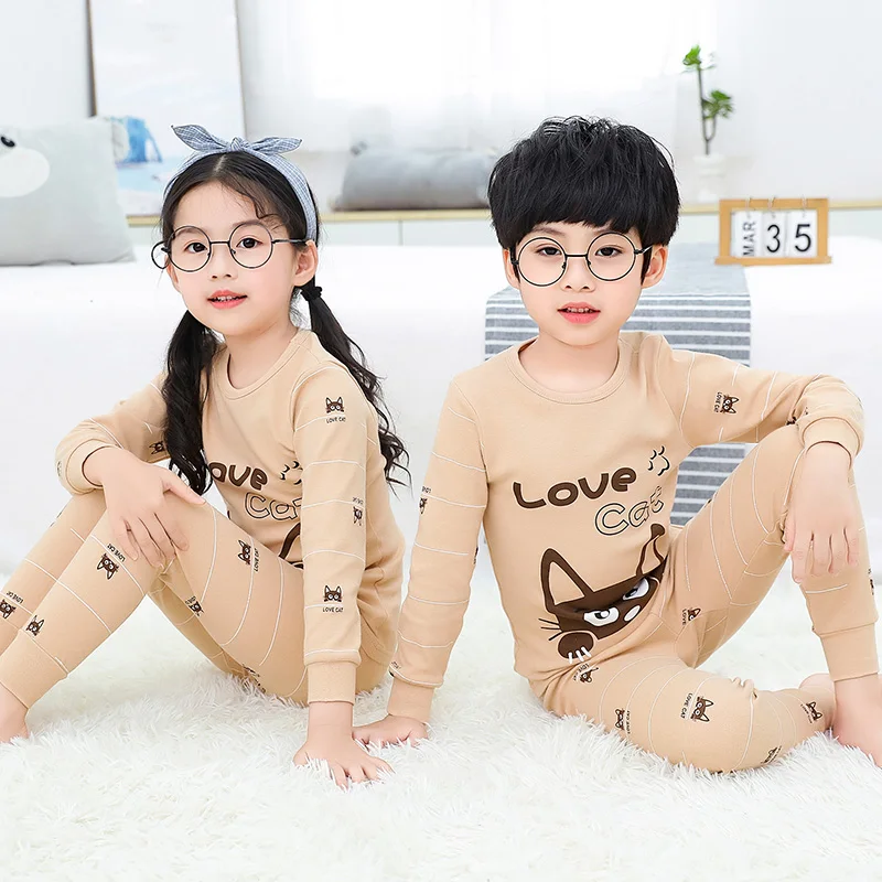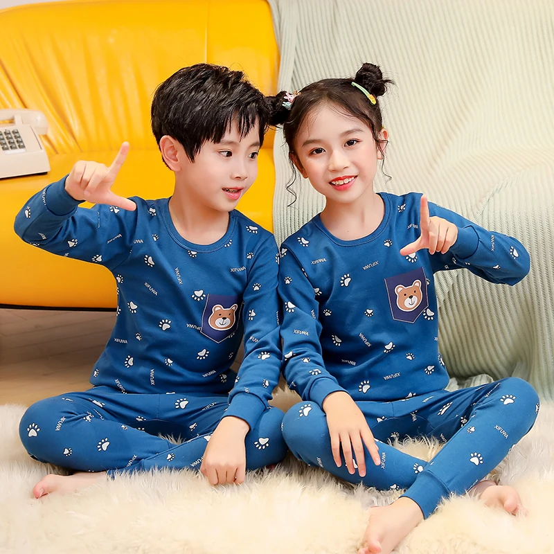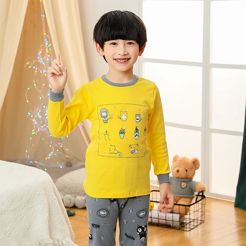 Весенне-осенние пижамные комплекты с длинными рукавами для мальчиков и девочек подходит для детей 2, 3, 4, 5, 6, 7, 8 От 9 до 14 лет