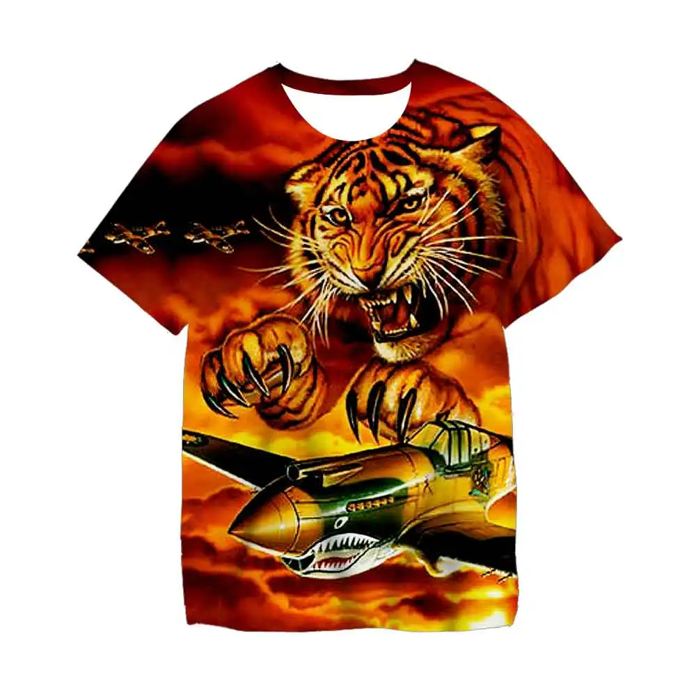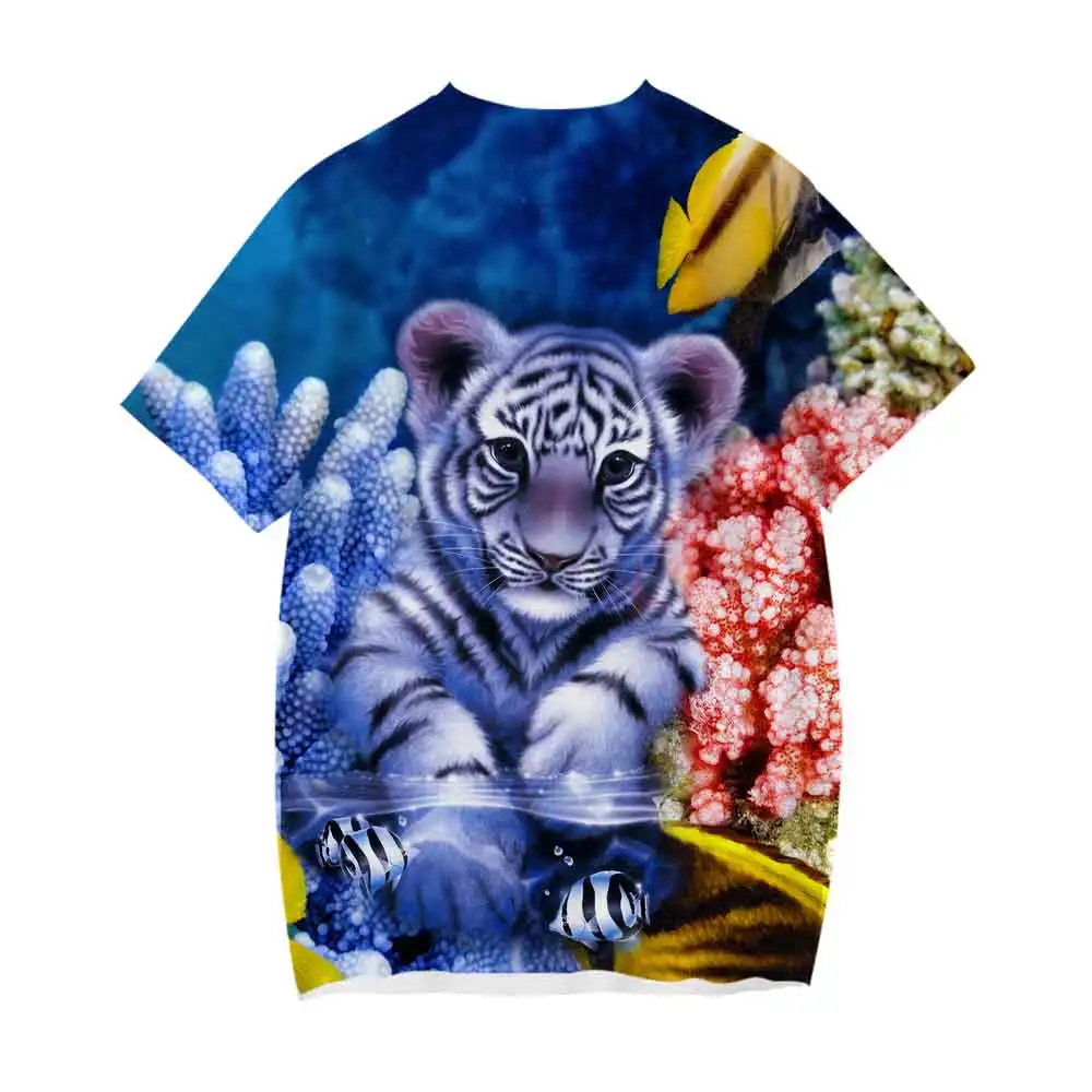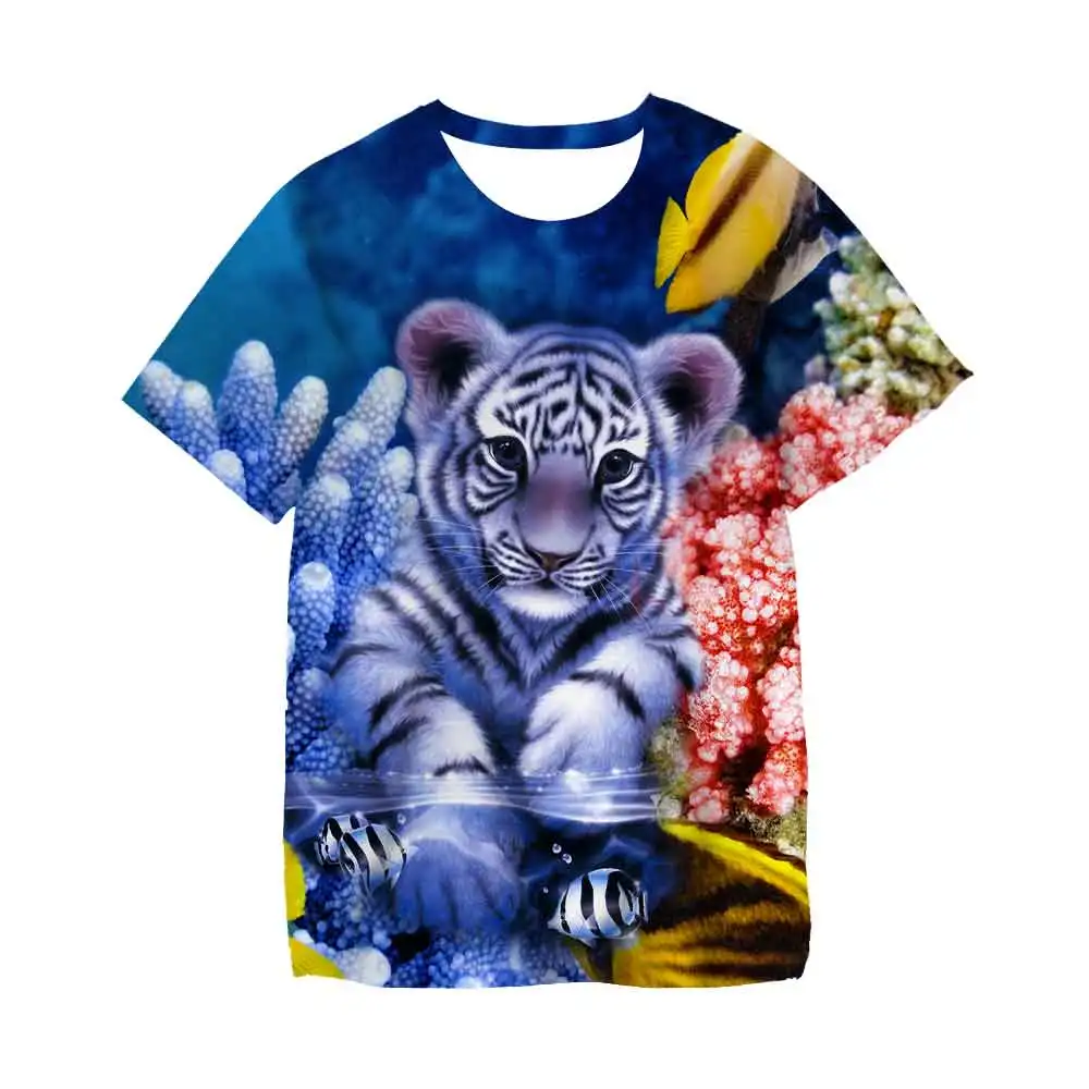 Футболка для мальчиков, с тигровым принтом, лето 2021 г., Повседнев...