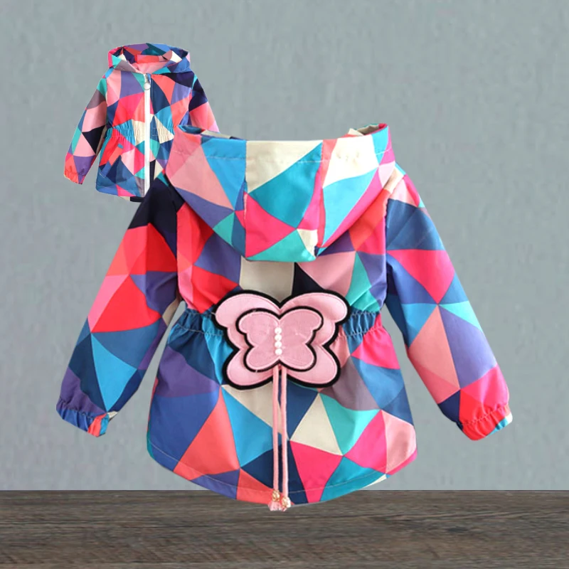 Куртка для девочек, ветровка с аппликацией в виде бабочек, на возраст 2-7 лет, принт с геометрическим узором
