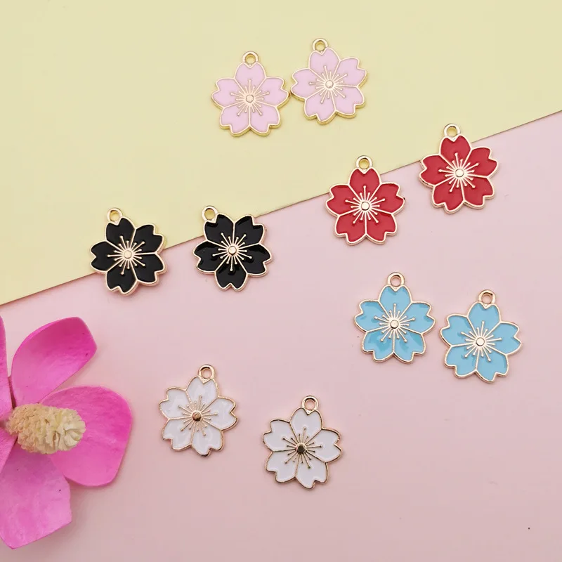 10 штукупаковка вишня в цвету Эмаль Подвески Металлические пяти леп...