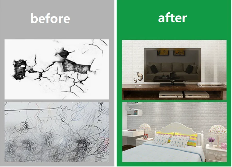 2: наклейка на стену изготовлена из мягкого вспененного материала высокой плотности, посылка xpe, теплоизоляционная, анти-столкновения, водонепроницаемая, и передняя часть может быть очищена