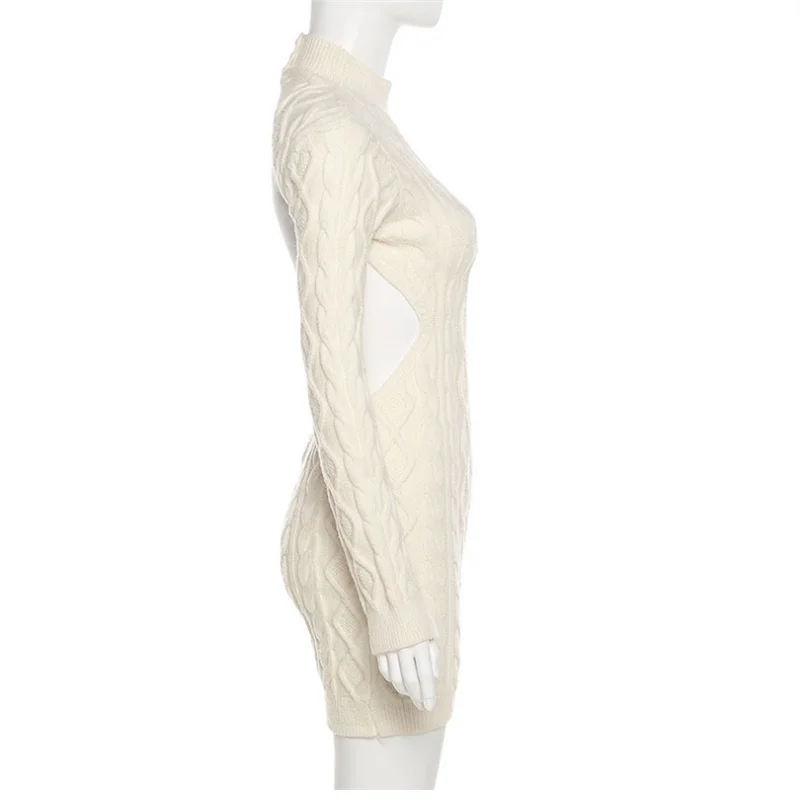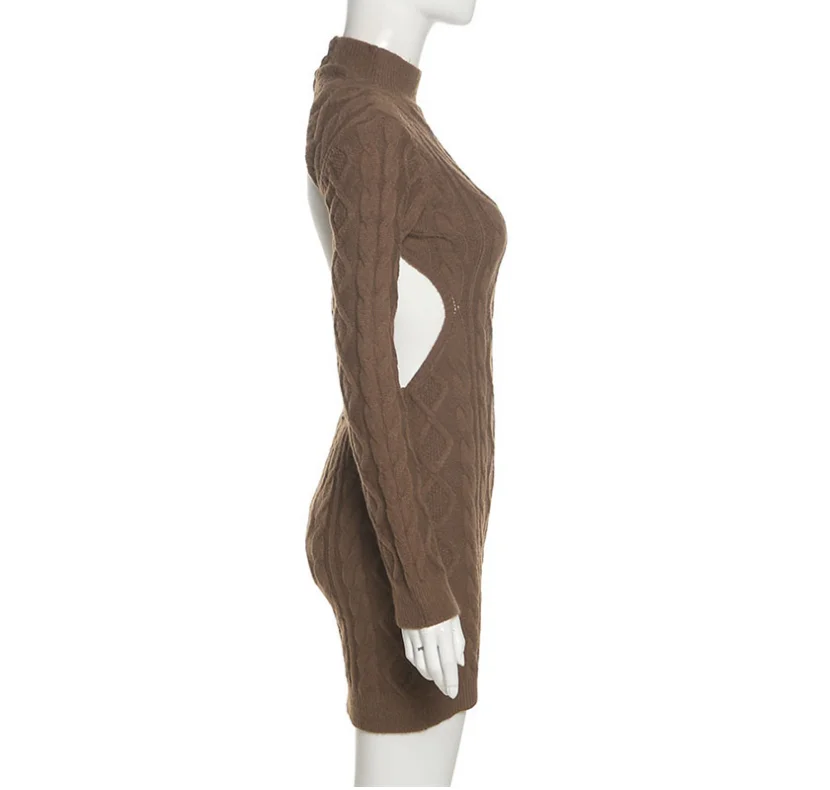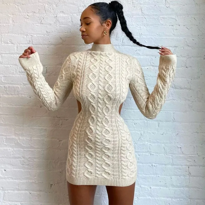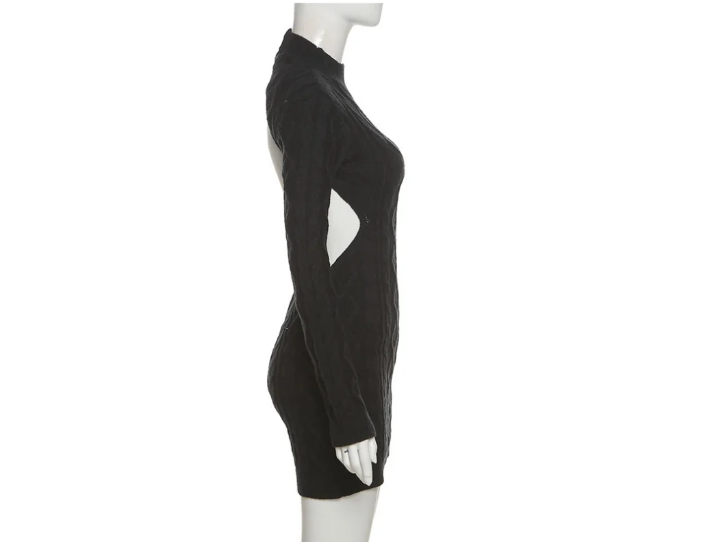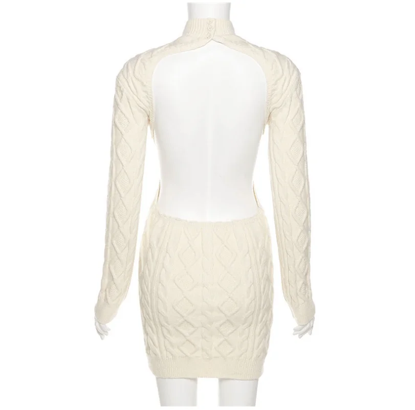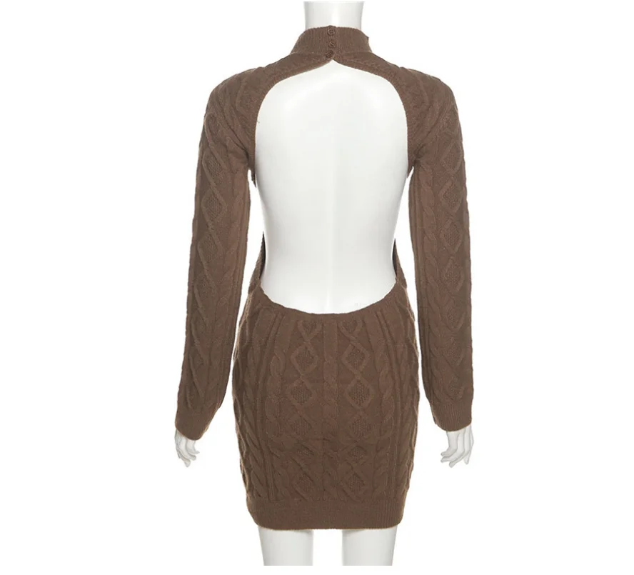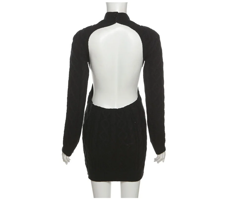 Женское трикотажное мини-платье с открытой спиной и длинным рукавом
