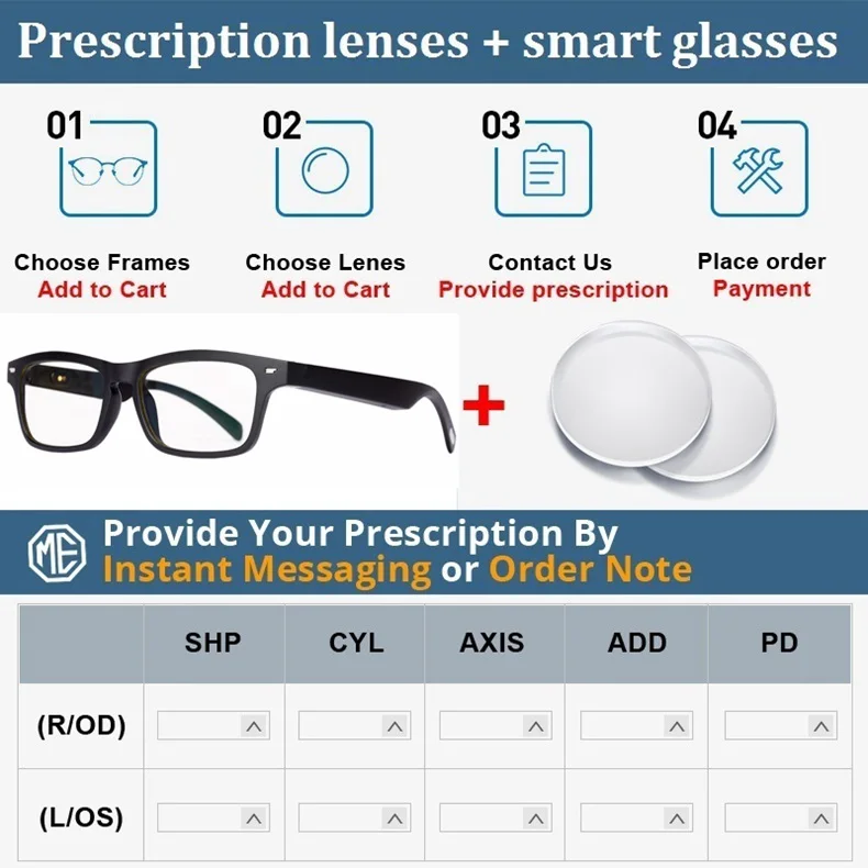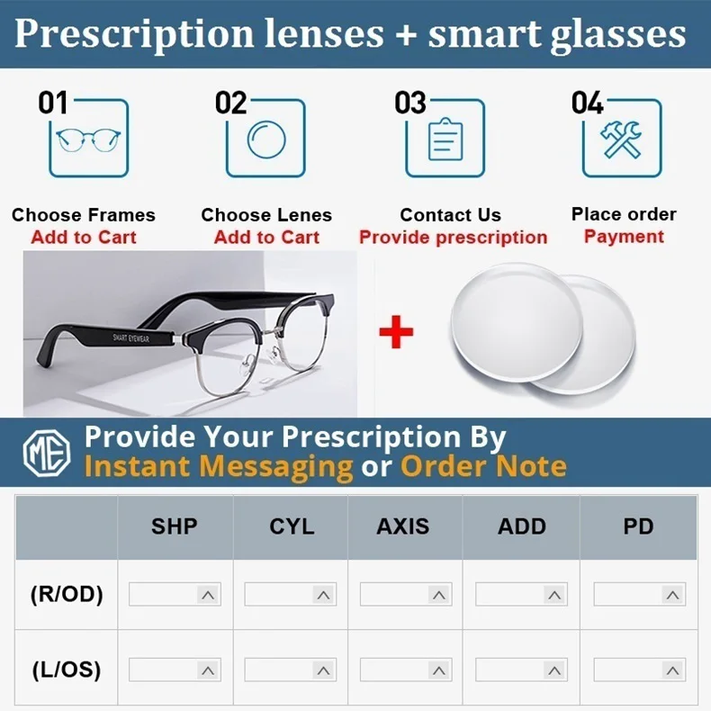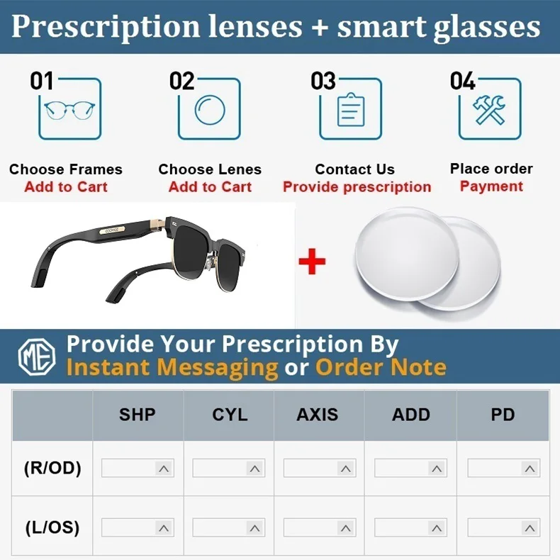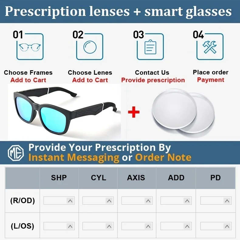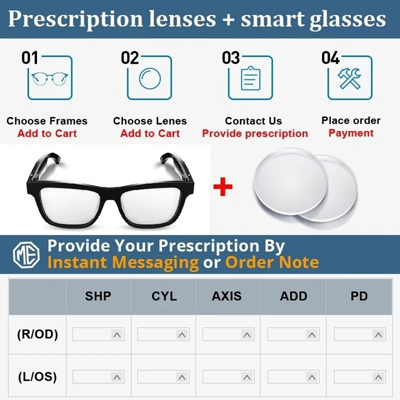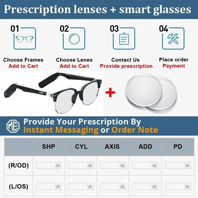 Примечание: Мы продаем только умные очки и линзы по рецепту вместе, не продаем только линзы по рецепту, пожалуйста, обратите внимание. Пожалуйста, свяжитесь с нами, если вы хотите купить только линзы по рецепту.