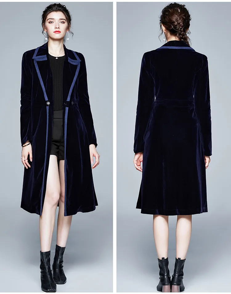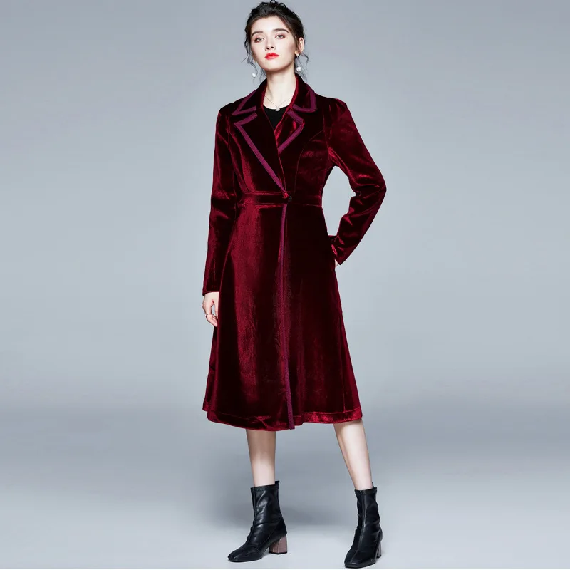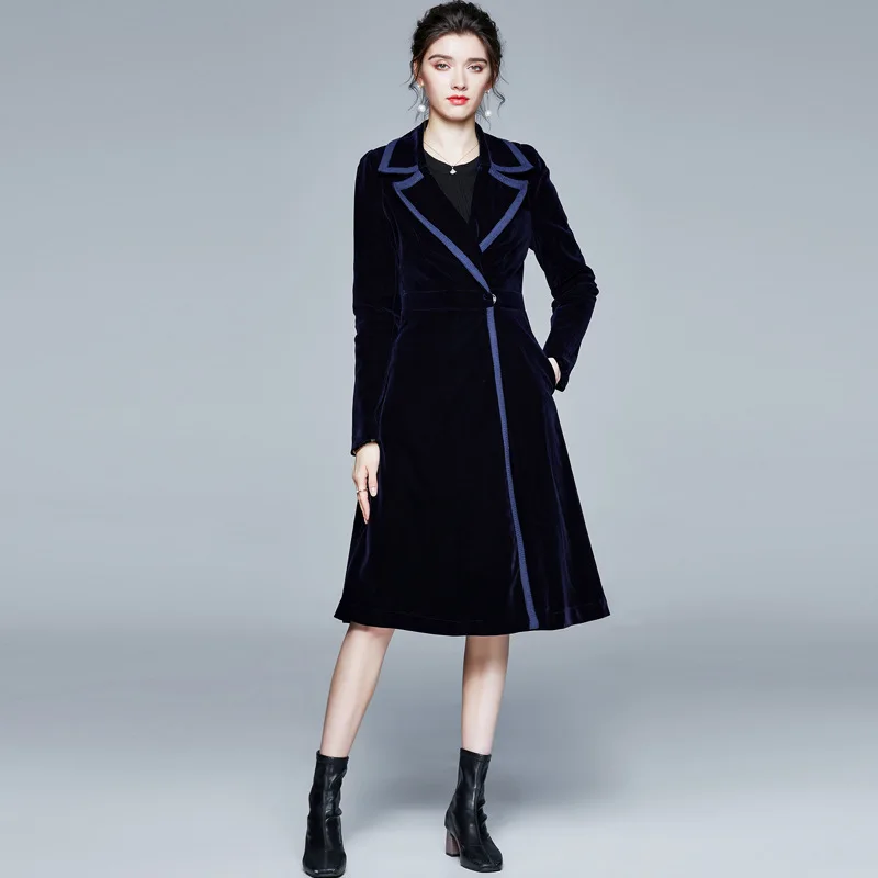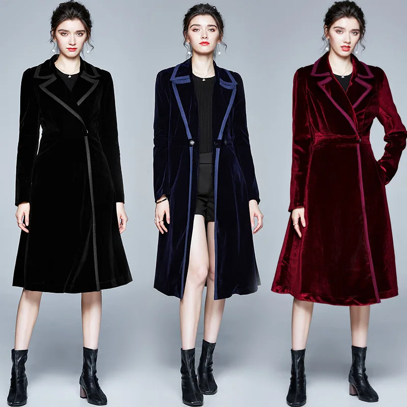 Длинный тренчкот с золотым бархатным утеплителем для осени и зимы, новинка 2021, женская модная темпераментная облегающая длинная юбка выше колена