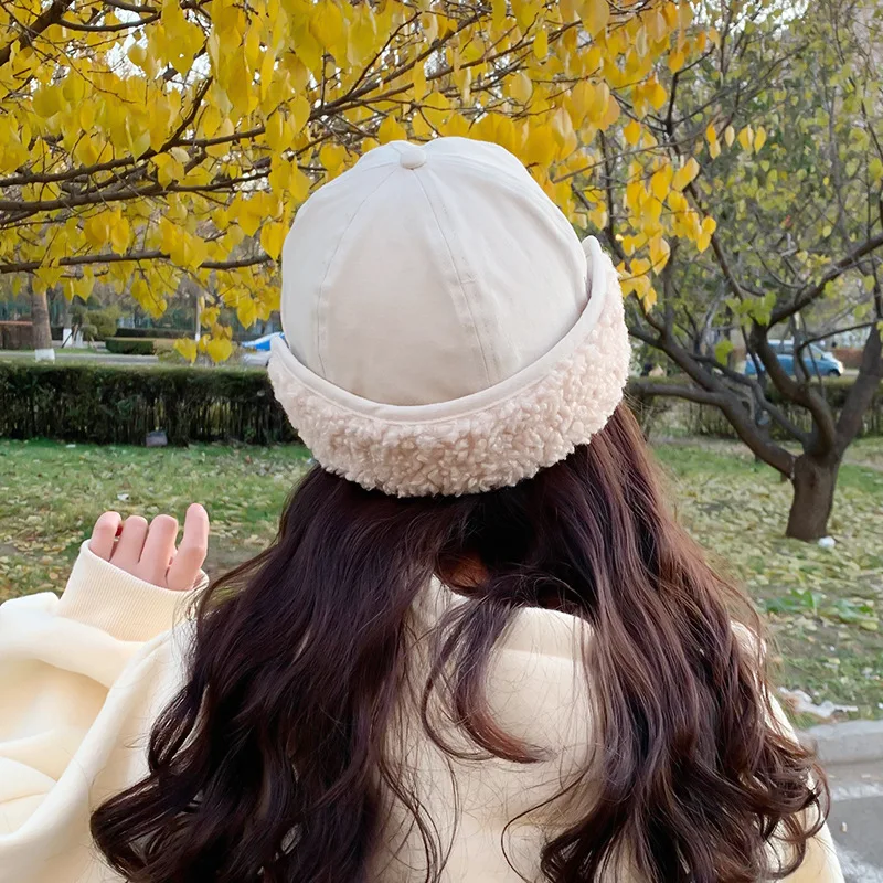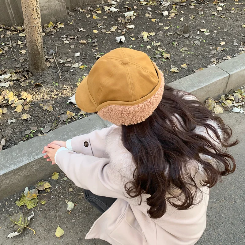 Женская теплая шапка из овечьей шерсти, плотная, женская, Осень-зима, зимне наушники шапка, милый ветрозащитный колпак