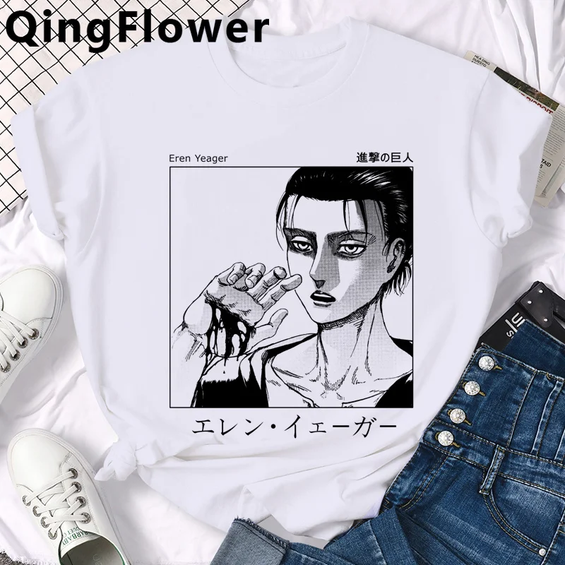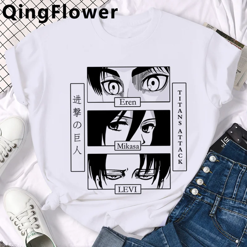Атака Титанов Женская Повседневная размера плюс пара белая футболка...