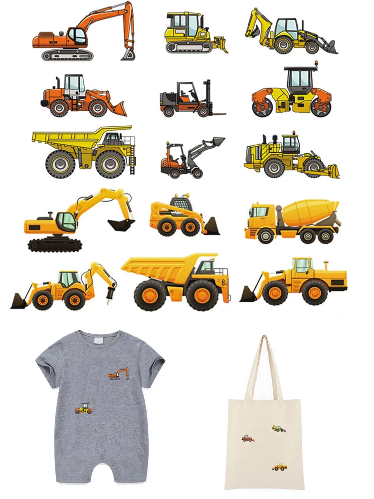 Мультяшный строительный автомобиль с утюгом на термоперенос А-урове...