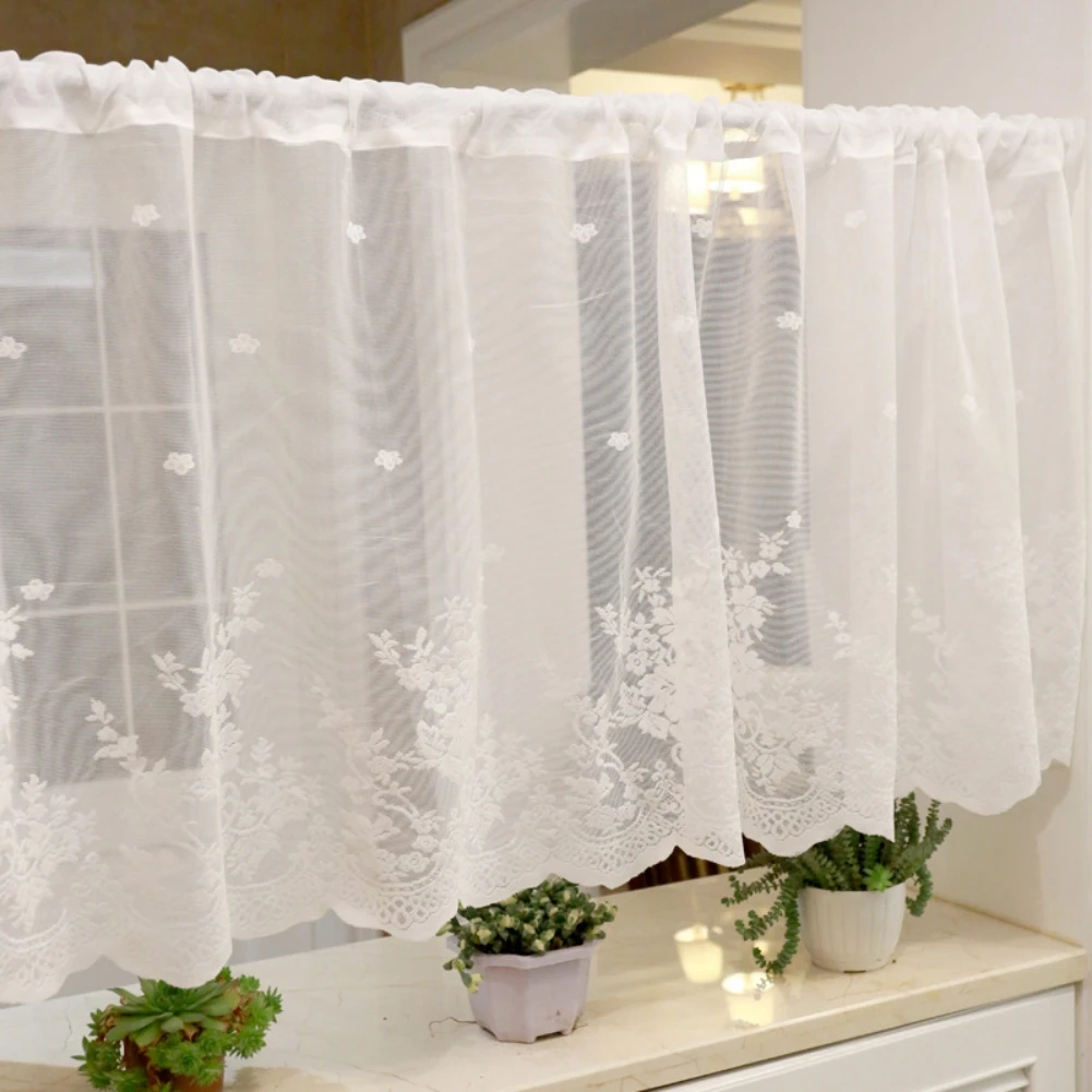 Кружевная Короткая занавеска для гостиной, ванной, шкафа, стены, кухни, окна, балдахин, маленькая Тюлевая занавеска, домашний декор
