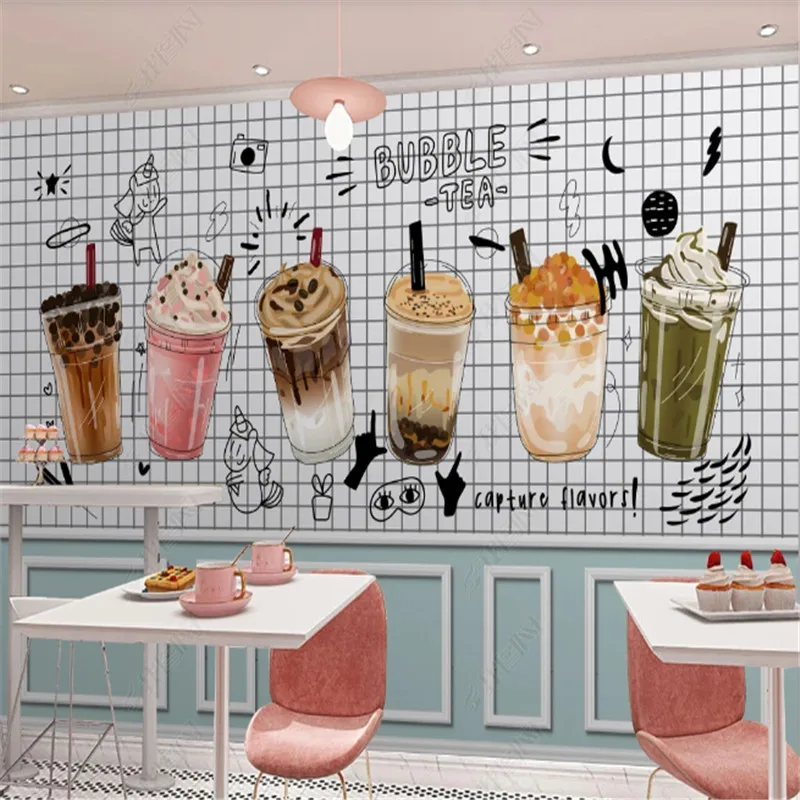 Настенная бумага в скандинавском стиле с ручной росписью, абстрактный 3d-фон с изображением чая, молока, десертов, промышленного декора, настенная бумага s