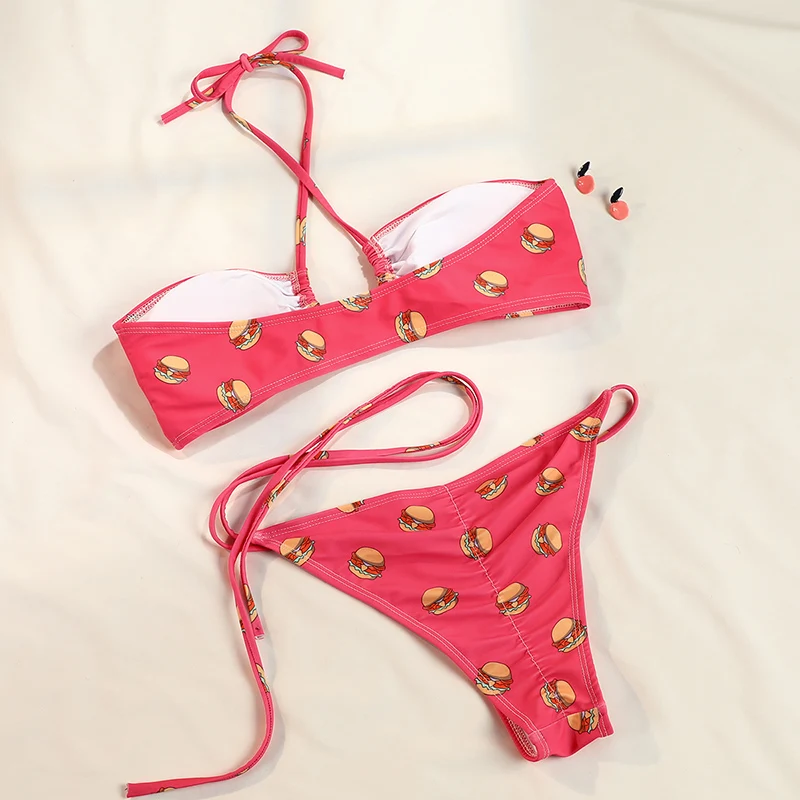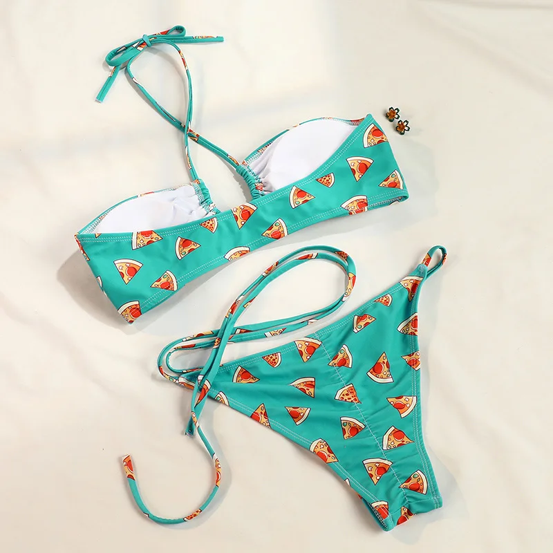 Miyouj Новые Сексуальные бикини 2022, женские купальники с лямкой на шее, женский купальный костюм со складками, бандажный комплект бикини на завязках