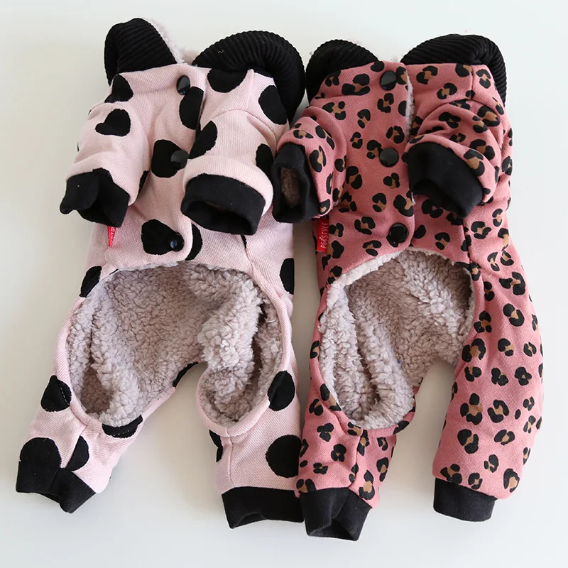 Милый леопардовый комбинезон в горошек для собак; Костюм для маленьких собак; Зимняя одежда для собак; Одежда для чихуахуа, йоркширского померанского пуделя