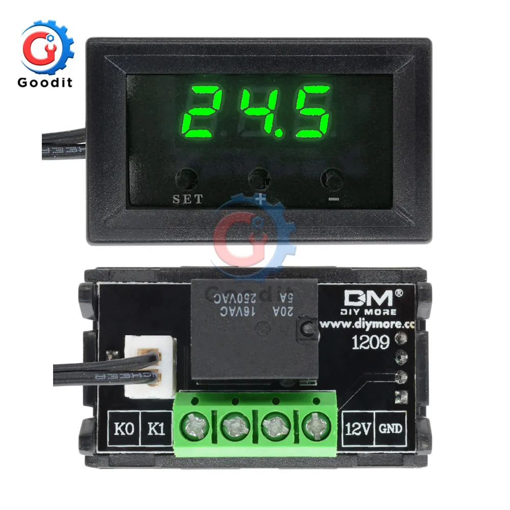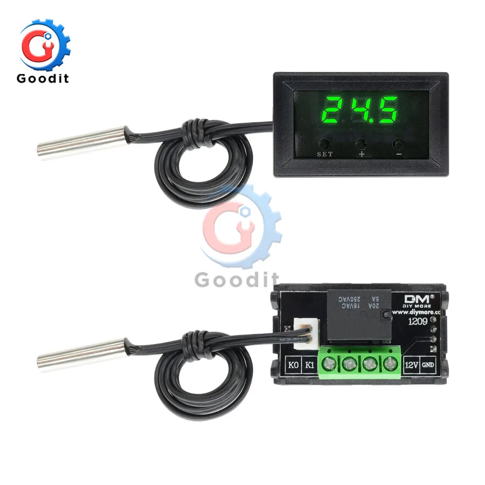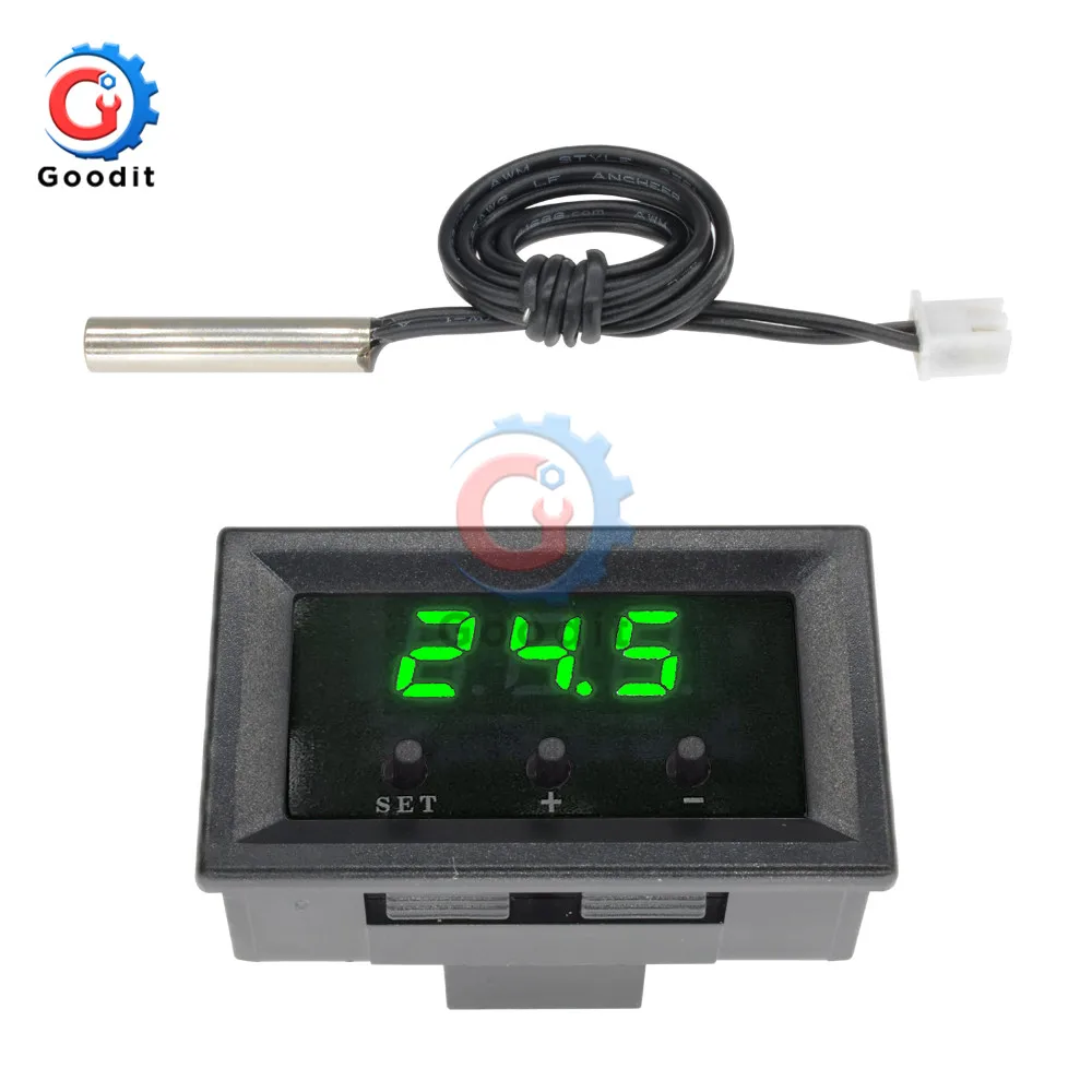 Цифровой светодиодный регулятор температуры W1209, 0,28 дюйма, термометр, датчик NTC, Датчик постоянного тока 12 В, автомобиль с чехлом, зеленый свет