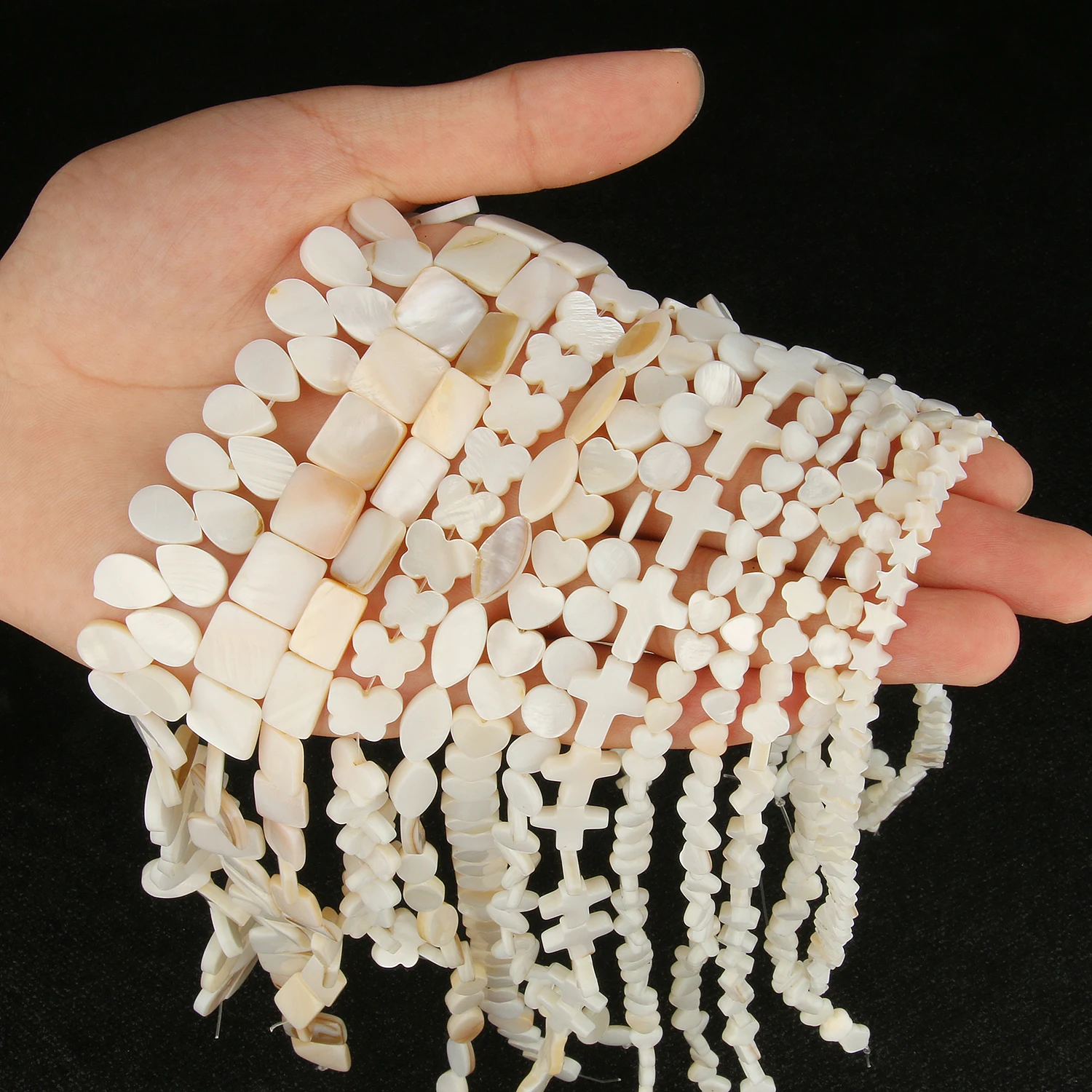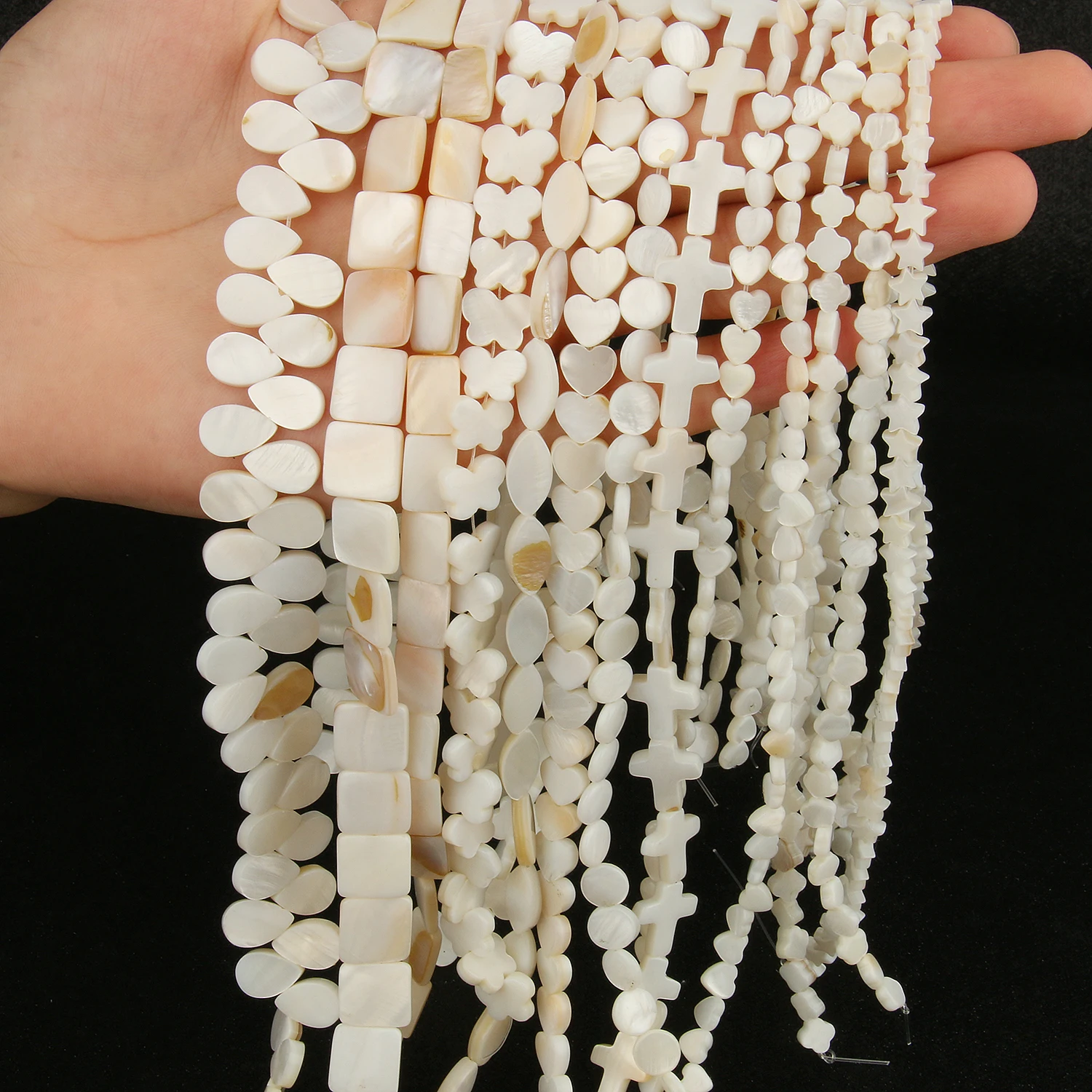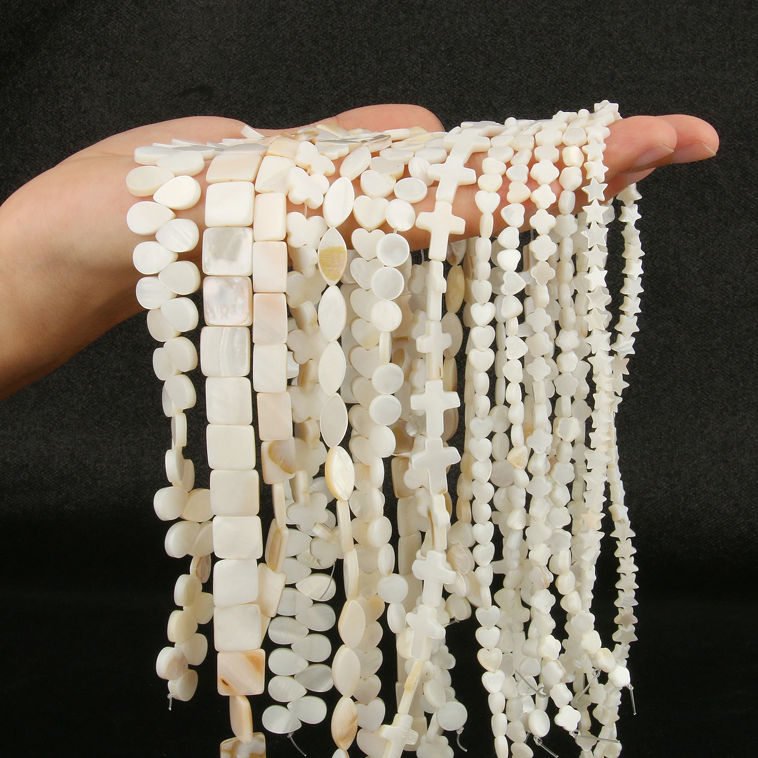 Натуральные белые жемчужные бусины, ракушки, крест, сердце, звезда,...