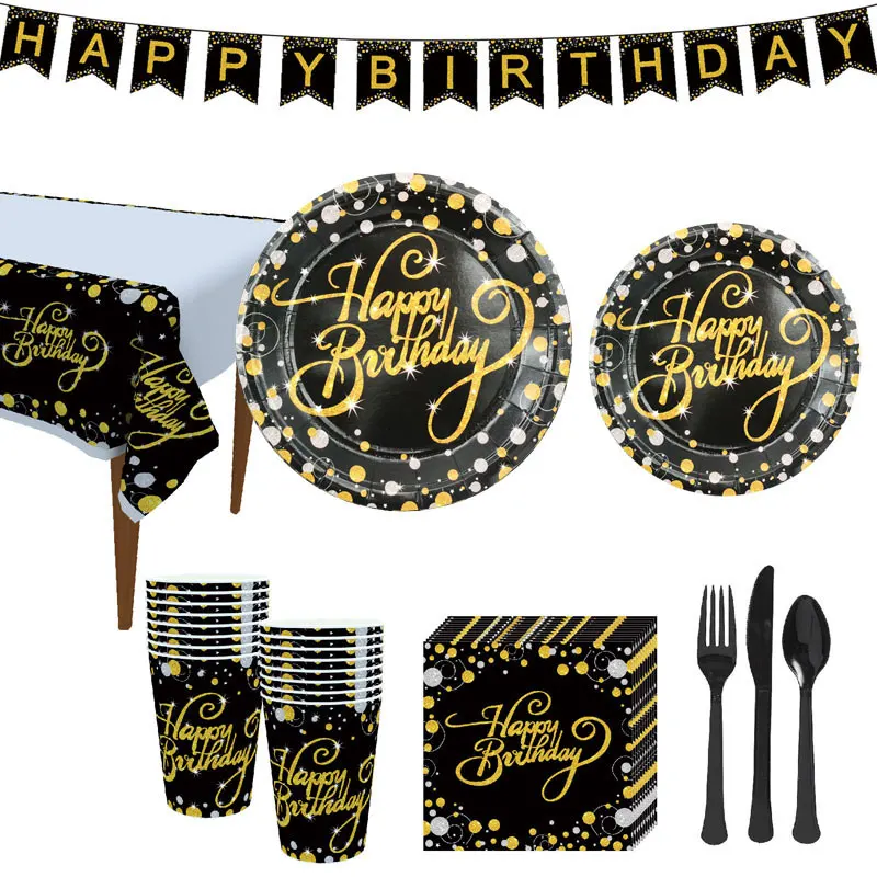 Набор одноразовой посуды для вечевечерние, Черное золото, тарелка для украшения стола, чашка, нож, ложка, вилка, салфетка, товары для свадьбы, дня рождения вечерние