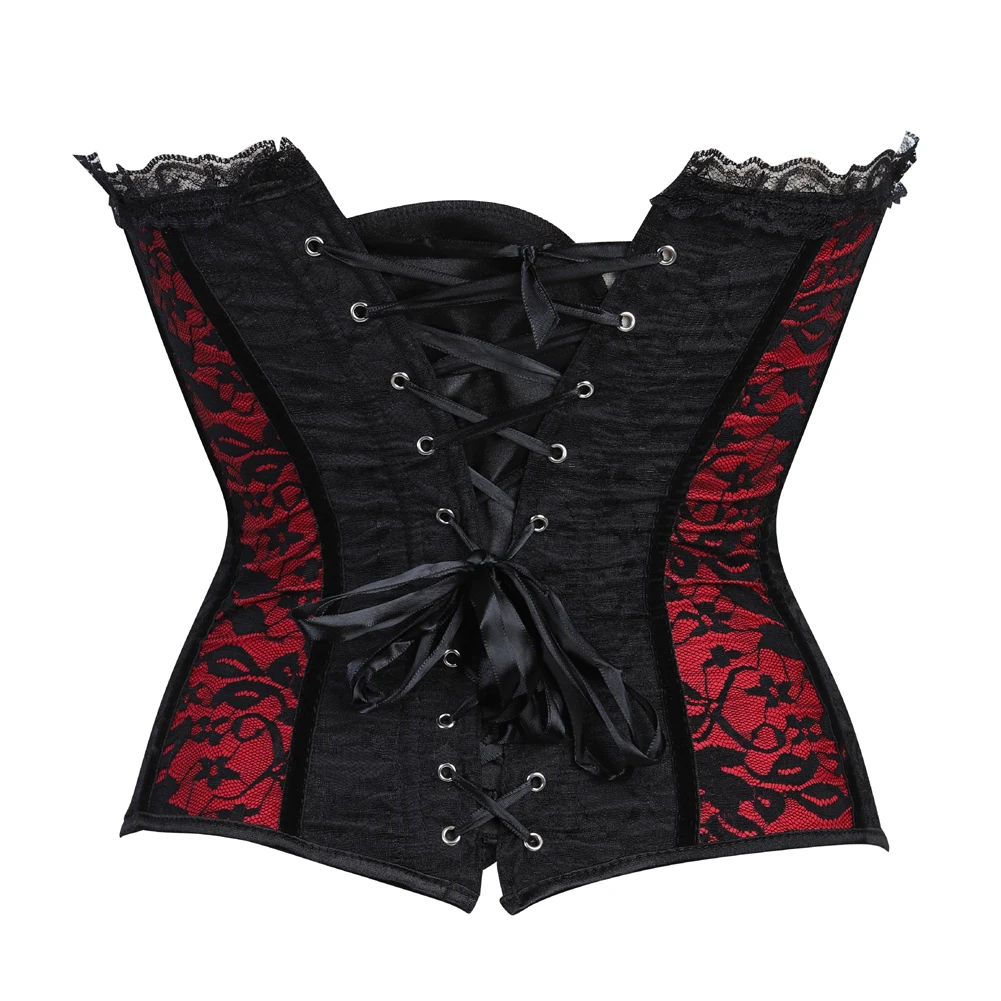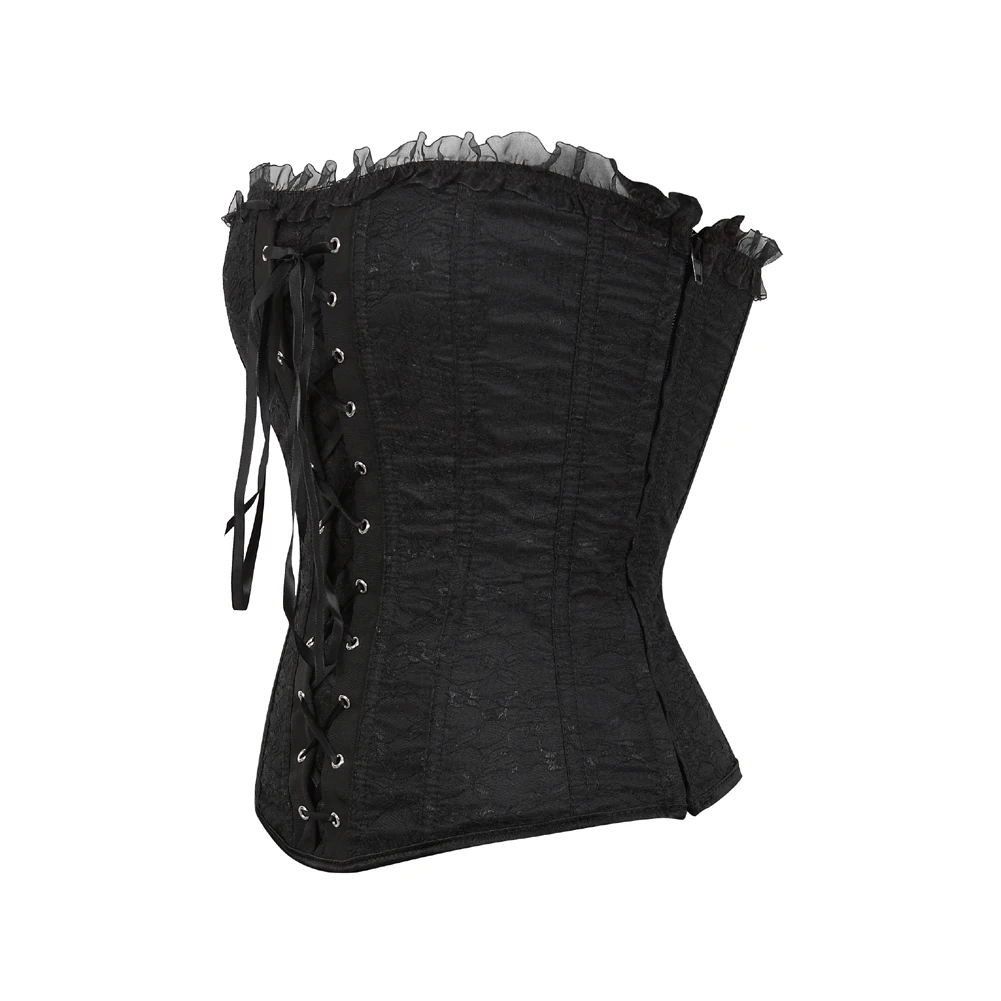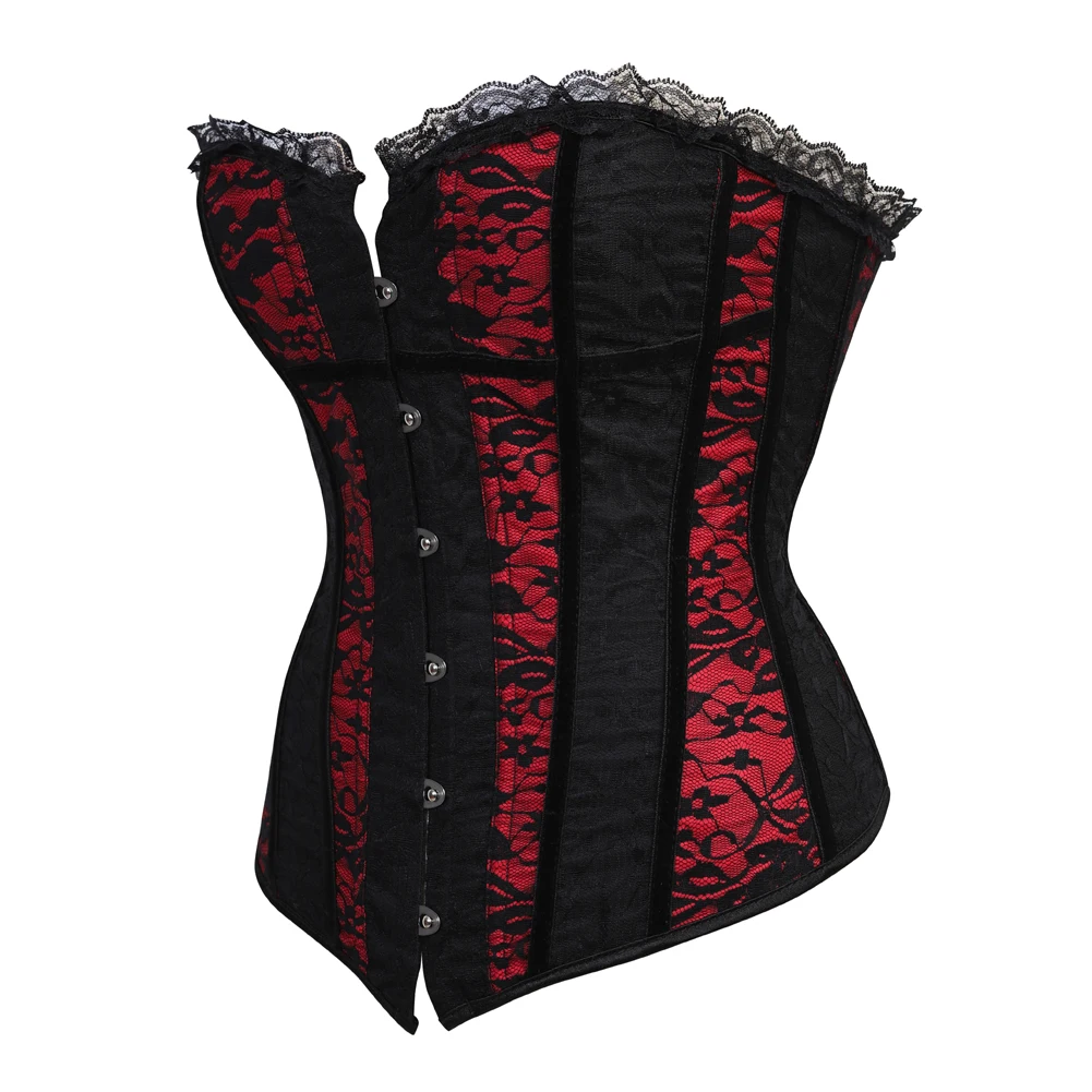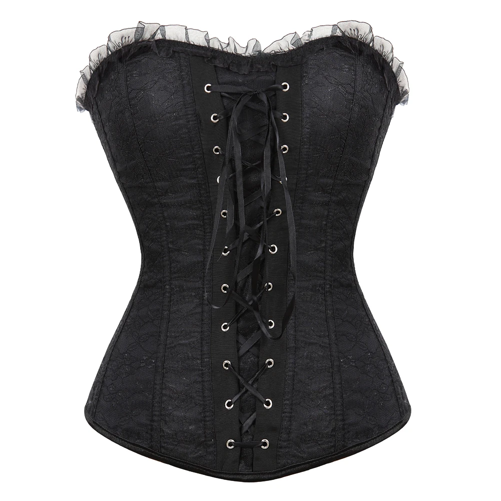 Сексуальные женские Корсеты с цветочным рисунком с черной кружевной отделкой корсет атласный Overbust Талия Cincher бюстье размера плюс
