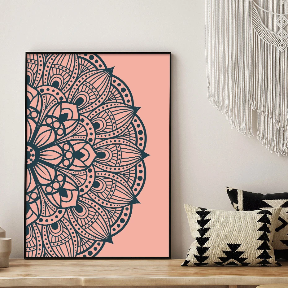 Картина для йоги в стиле бохо, Настенная картина с принтом в виде подарка Зен, розового и зеленого цветов, декор для комнаты