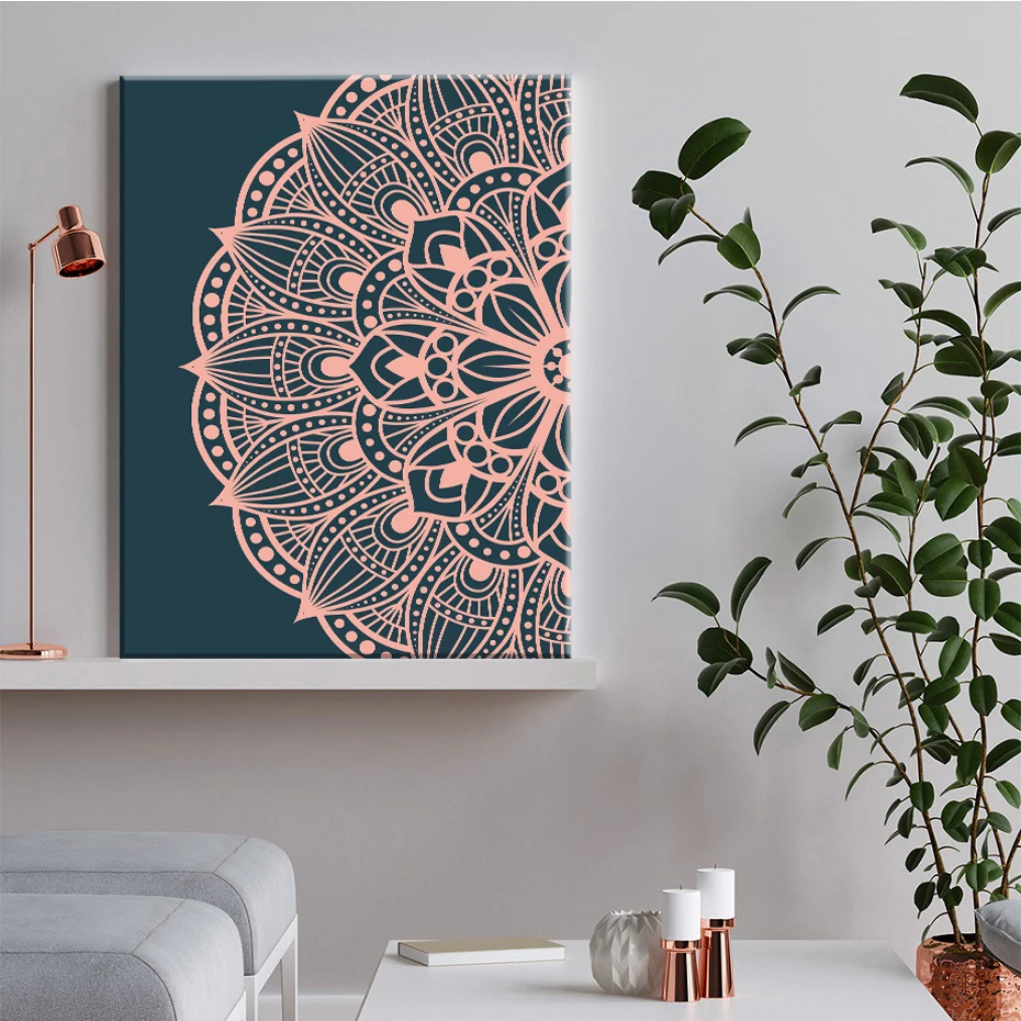 Сине-серая мандала, холст, постер, цветочный узор в стиле бохо, Zen...