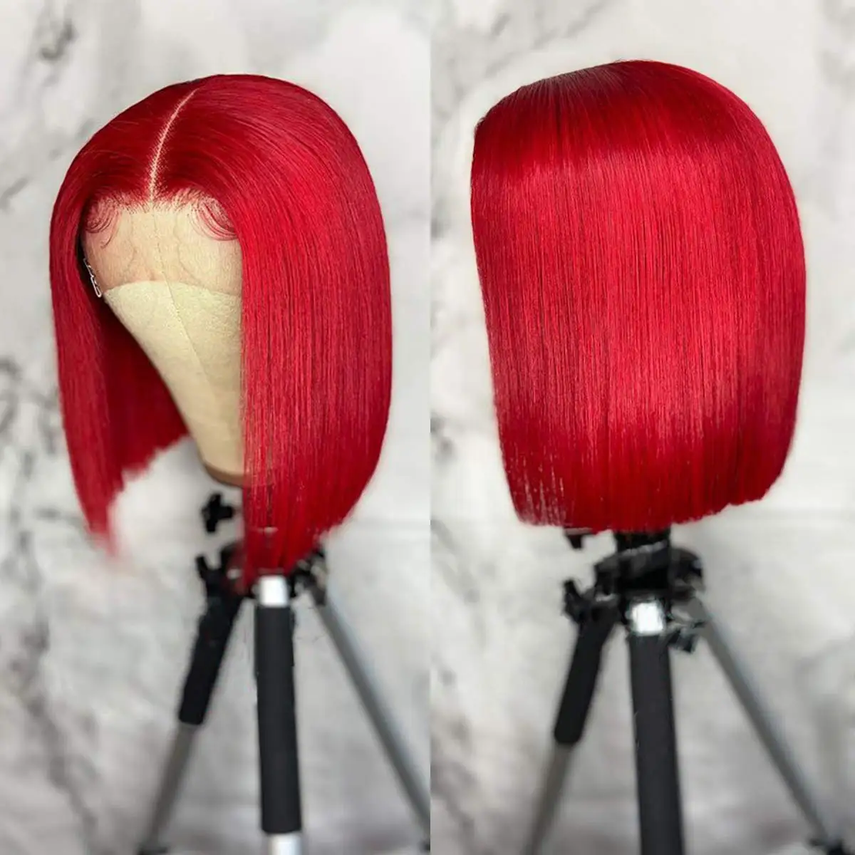 Короткие парики Bob, человеческие волосы 13x4x1, парики на сетке спереди, бразильские бесклеевые прямые волосы красного цвета, парик на сетке Боб для черных женщин, предварительно выщипанные