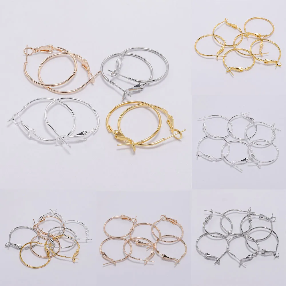 Круглые серьги-кольца 10 шт.лот, круглые серьги с металлическим покрытием, крючки для сережек сделай сам, аксессуары для изготовления ювелирных изделий, оптовая продажа, 20-70 мм