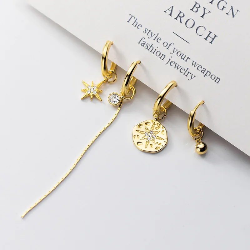 Женские асимметричные серьги-кольца из серебра 925 пробы с кисточками