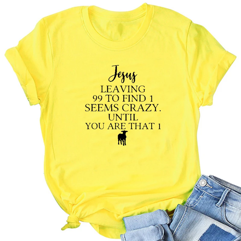 Jesus Leaving 99, чтобы найти 1, кажется сумасшедшим, пока вы не будете, что 1, Христианские Футболки, Женская хлопковая религиозная одежда, женские топы, футболки