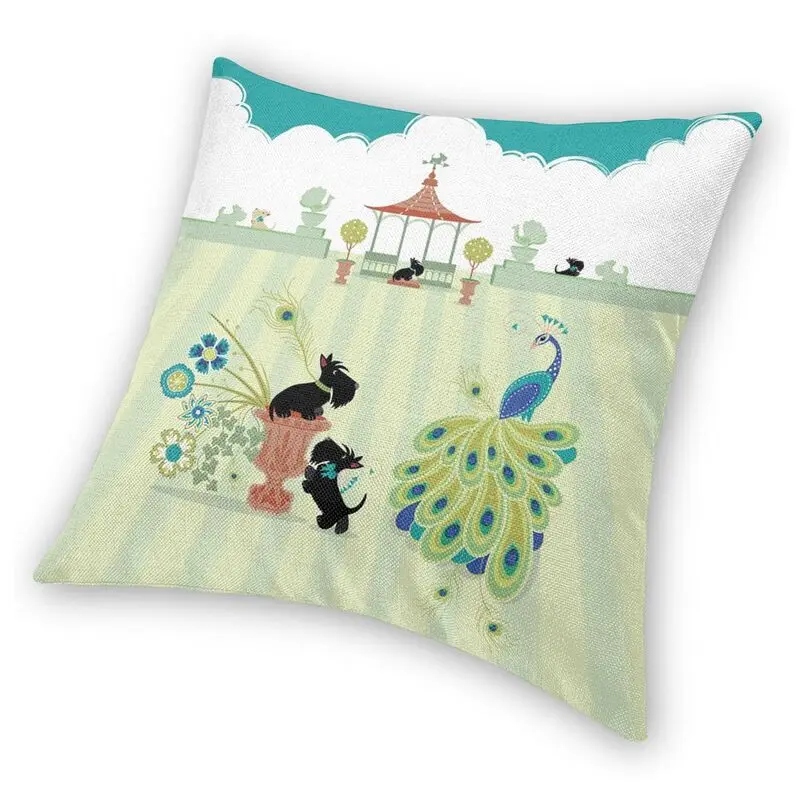 Наволочка для подушки с принтом скотти и павлинов 40x40, домашний декор, 3D печать, шотландская собака, декоративная подушка для автомобиля, двусторонняя