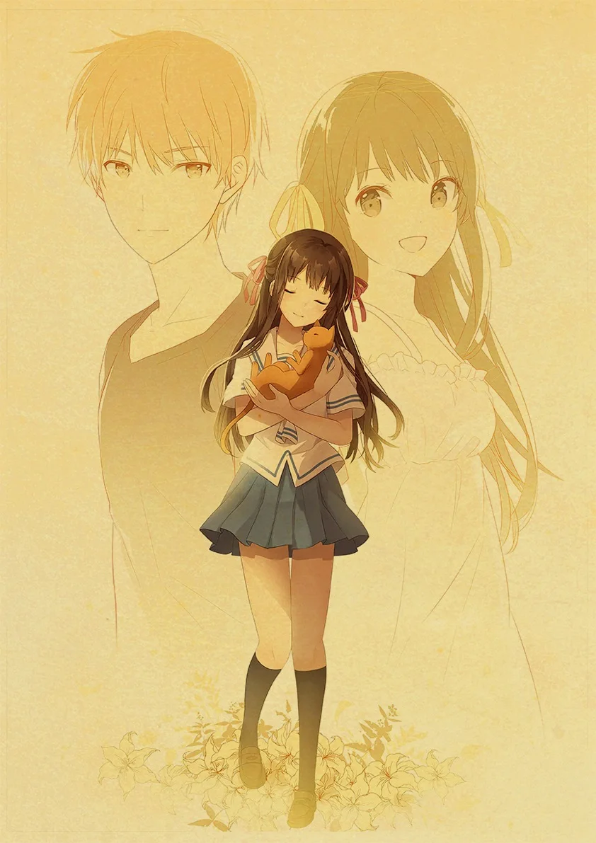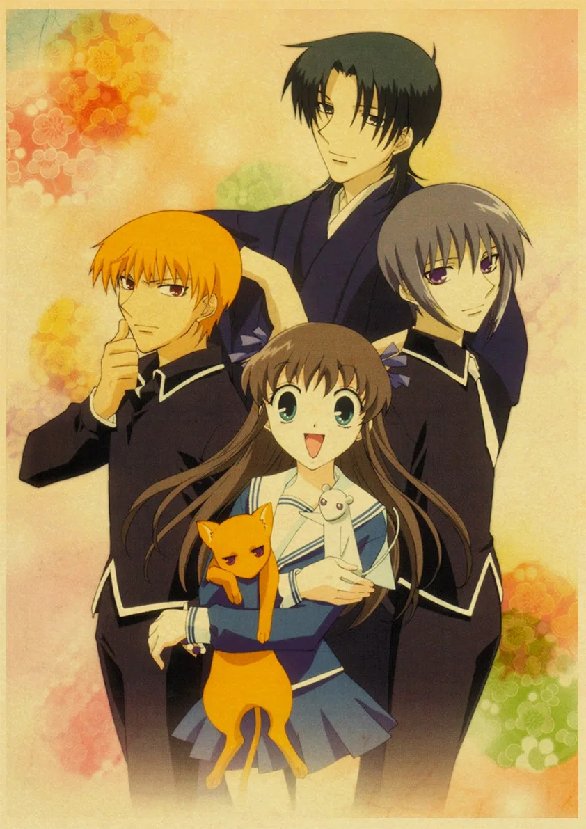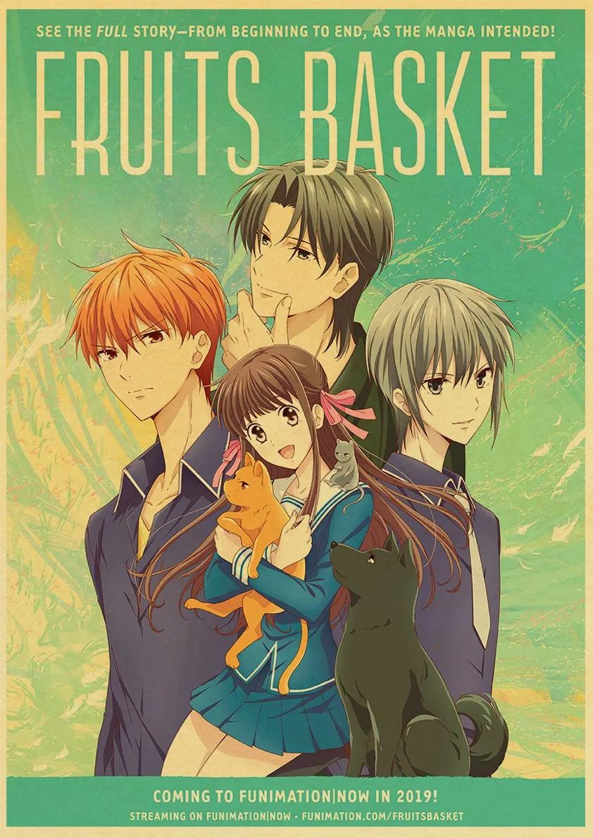 Винтажный постер в стиле аниме корзина фруктов в стиле ретро, домашняя наклейка из крафт-бумаги, художественная живопись, Настенная Наклейка для украшения кофейни, бара