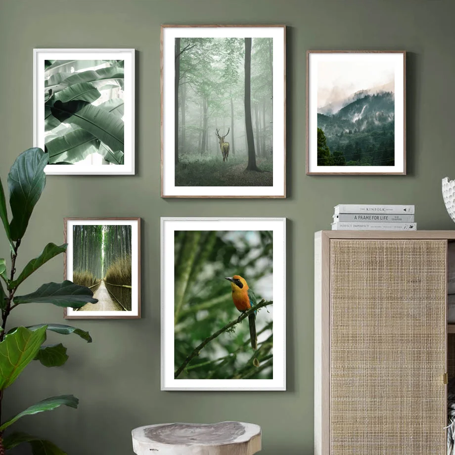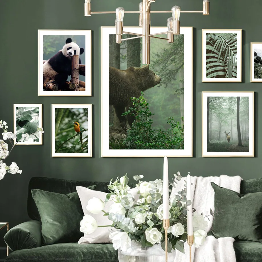 Постер в скандинавском стиле с изображением джунглей дикого жирафа панды оленя медведя тропических листьев
