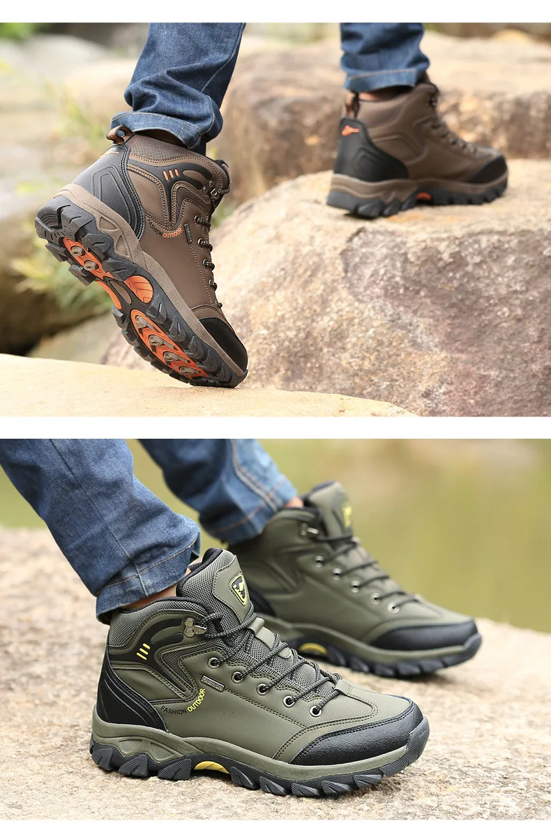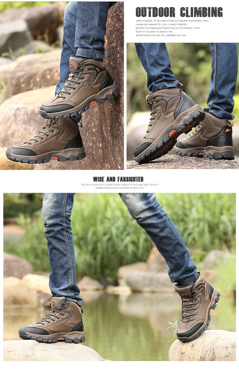 Водонепроницаемые походные ботинки, мужские кожаные кроссовки, мужс...